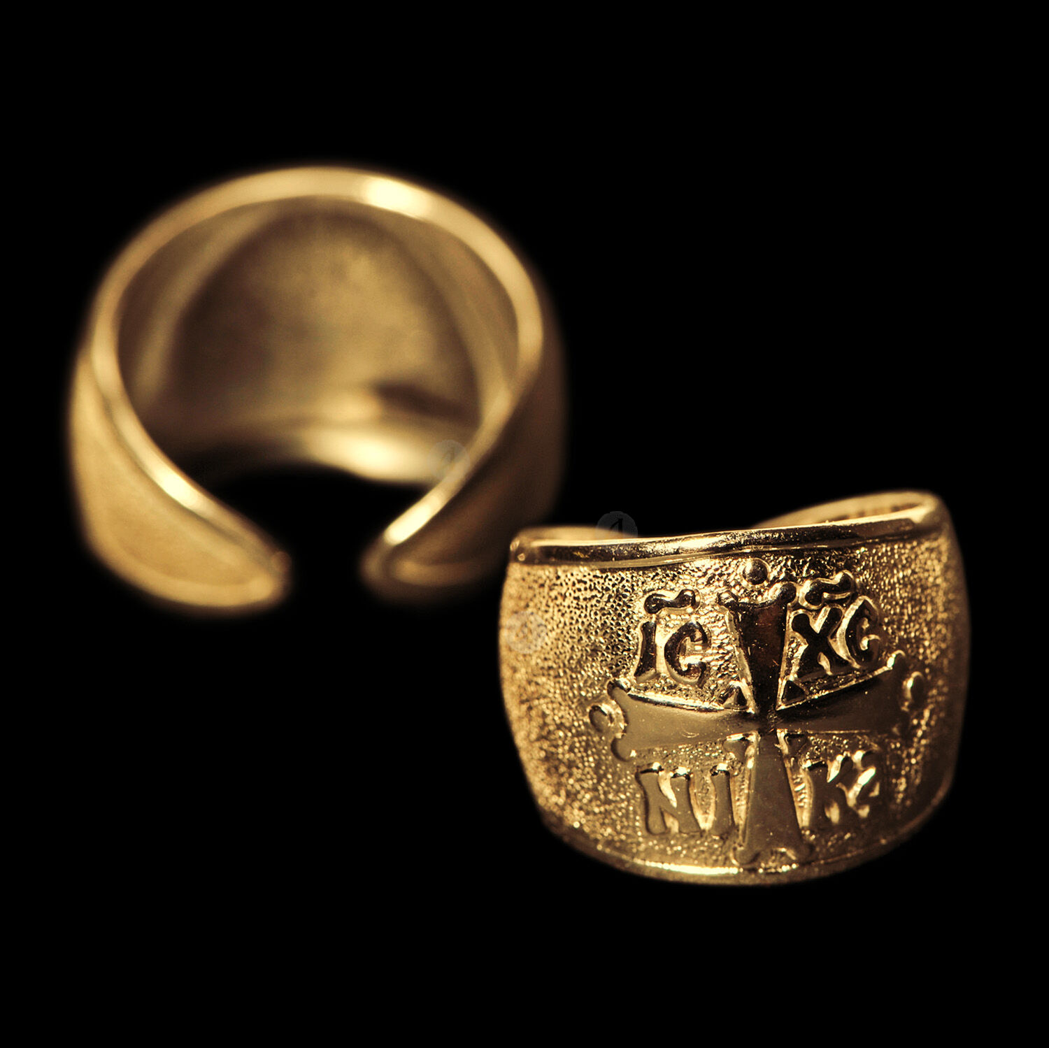 Δαχτυλίδι Αγίου Όρους από ασήμι 925° επιχρυσωμένο με εγχάρακτο σταυρό IC XC NIKA. Ανοιχτό με εύρος διάστασης 52-59.