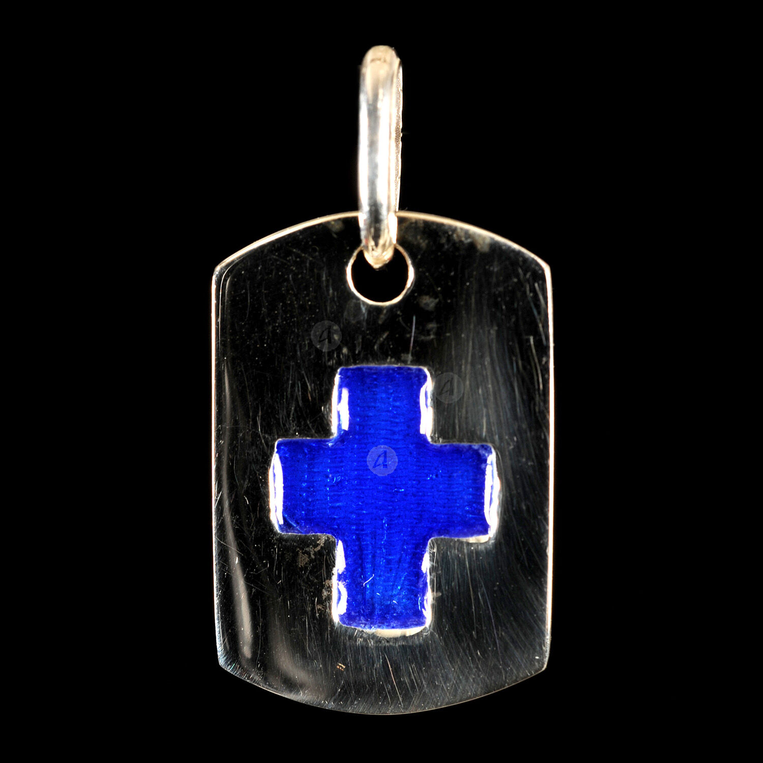 Μενταγιόν Αγίου Όρους από ασήμι 925° με σταυρό από γαλάζιο σμάλτο.
