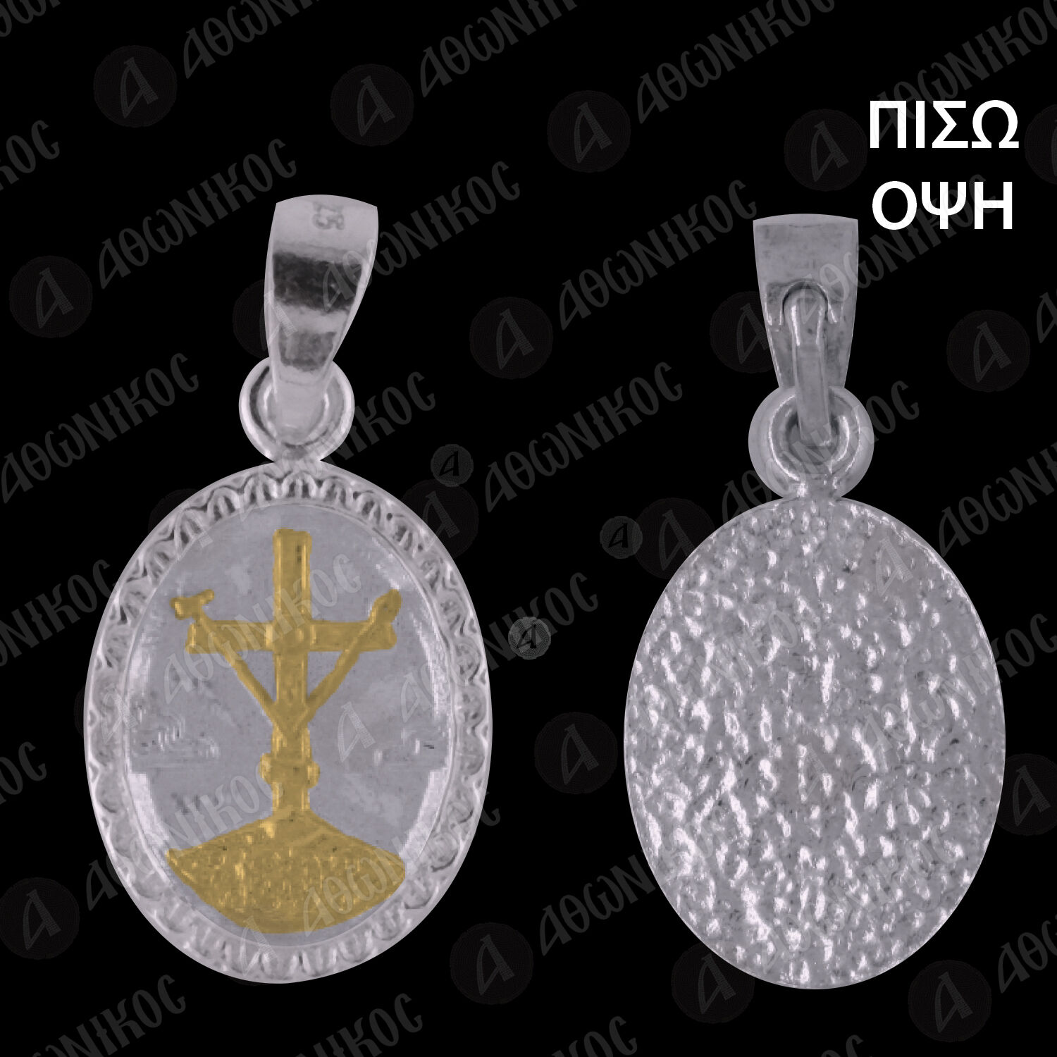 Αγιορείτικο μενταγιόν λαιμού οβάλ Άθως από ασήμι 925° επιχρυσωμένο.