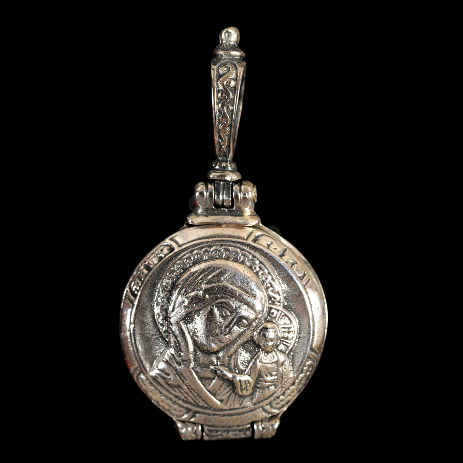 Επιστήθιο μενταγιόν Αγίου Όρους από ασήμι 925°. Βιδωτό που ανοίγει με την μορφή της Παναγίας.