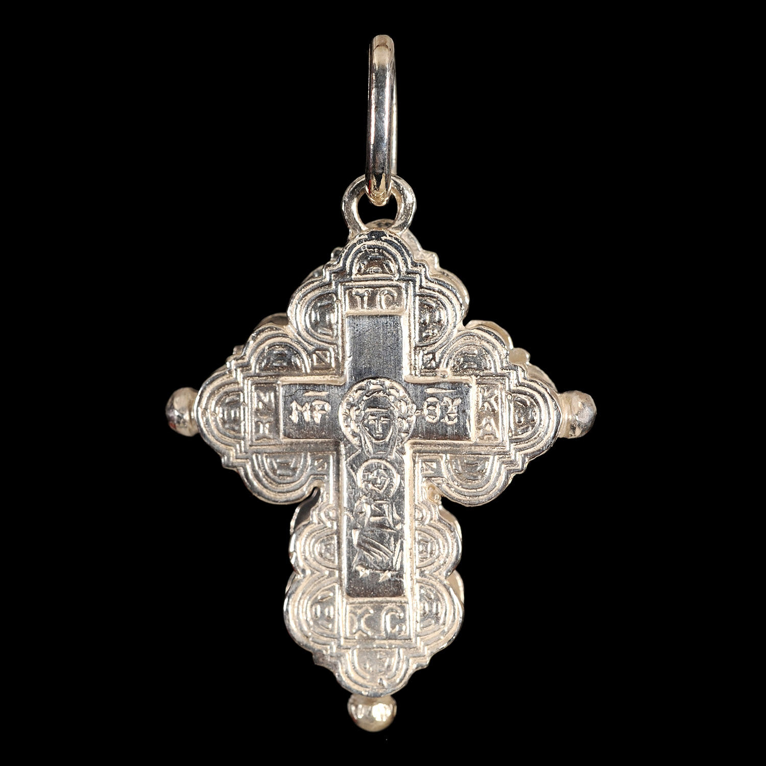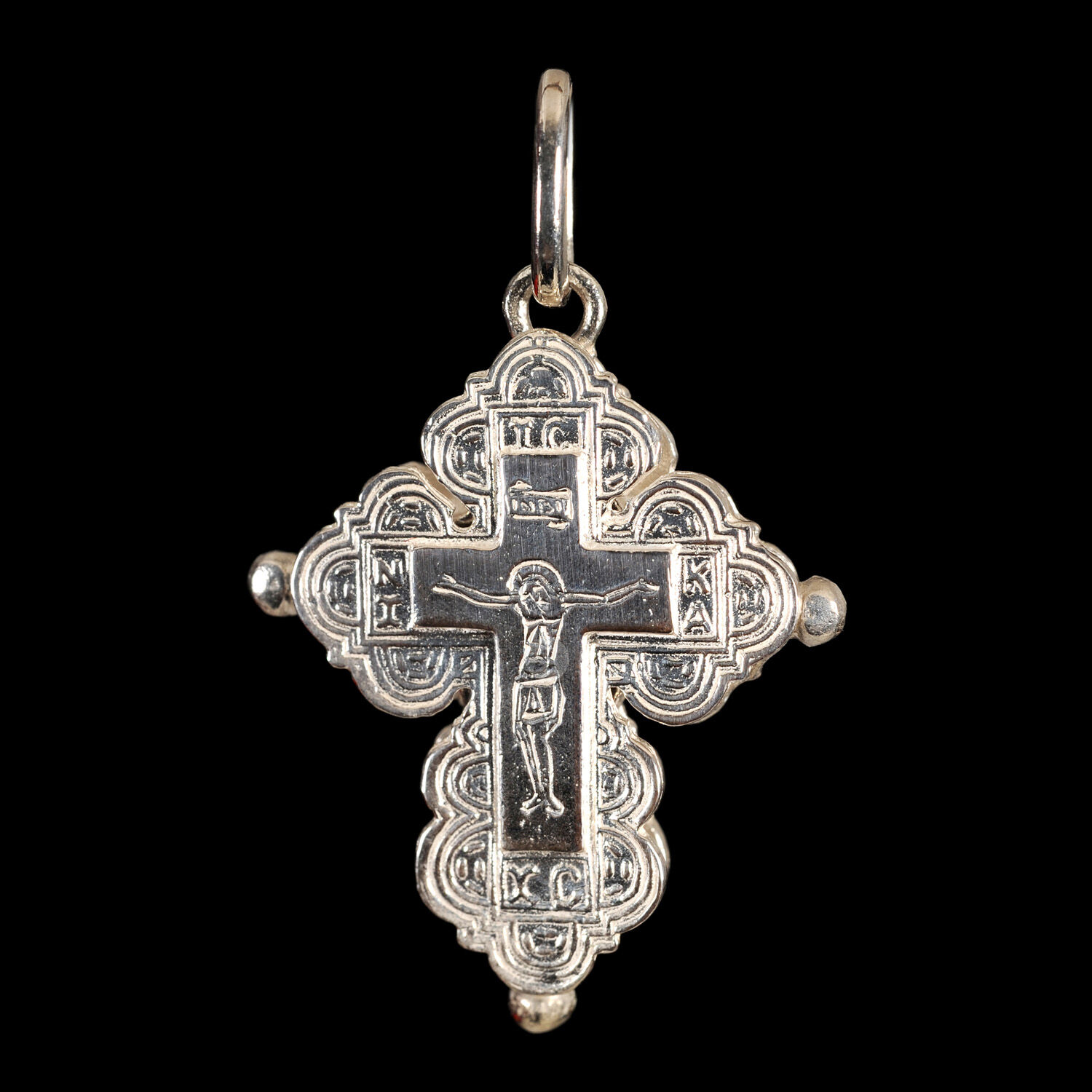 Επιστήθιος βιδωτός σταυρός που ανοίγει. Από ασήμι 925° με απεικόνιση τον Εσταυρωμένο Ιησού.