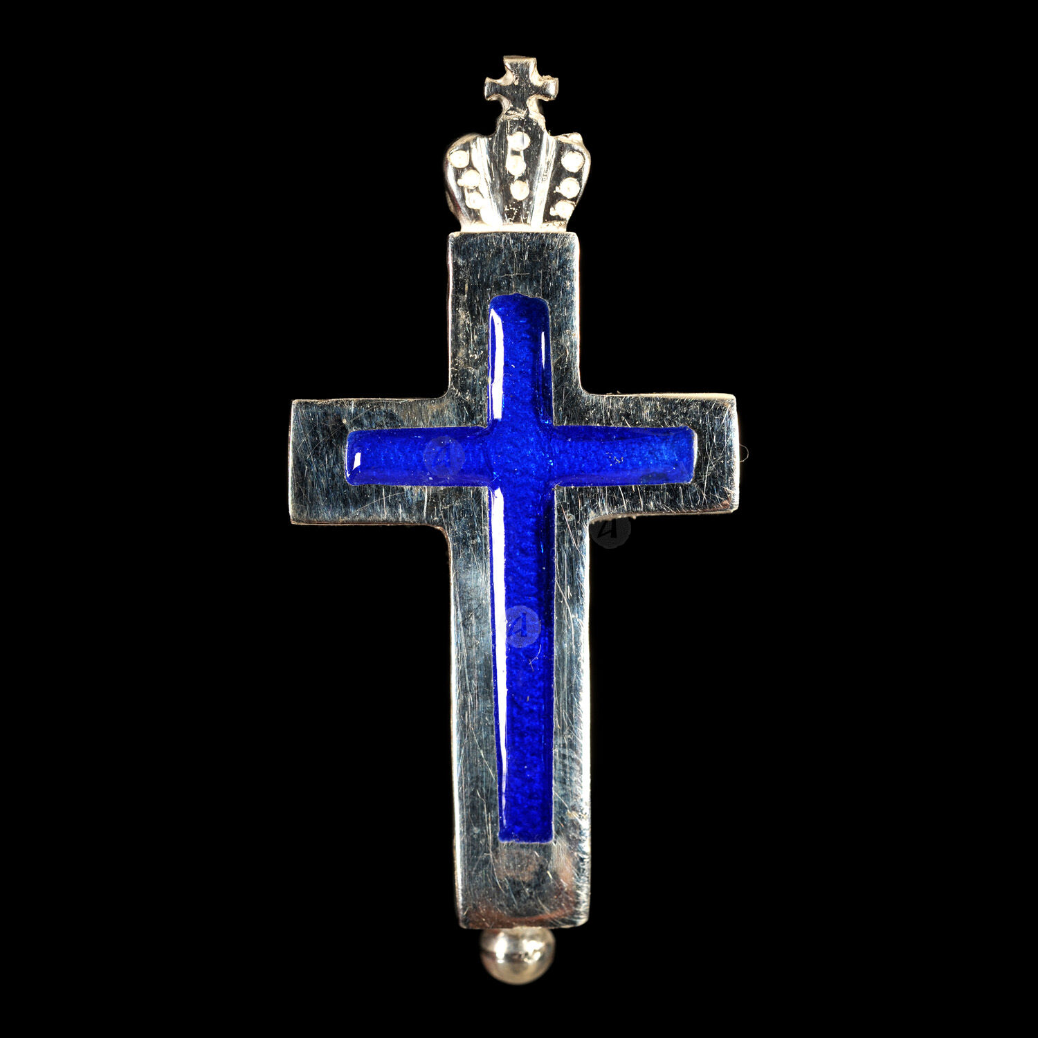 Επιστήθιος σταυρός από ασήμι 925° σε μπλε χρώμα, βιδωτός που ανοίγει.
