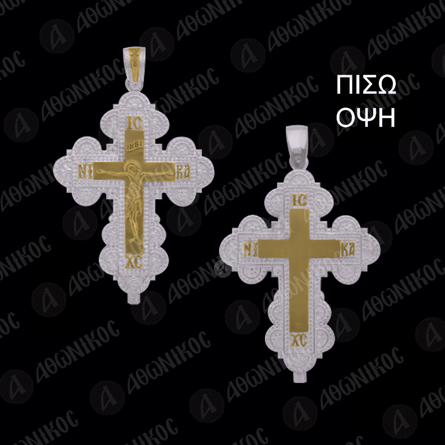 Επιστήθιος σταυρός από ασήμι 925° με απεικόνιση τον Εσταυρωμένο Ιησού Χριστό.