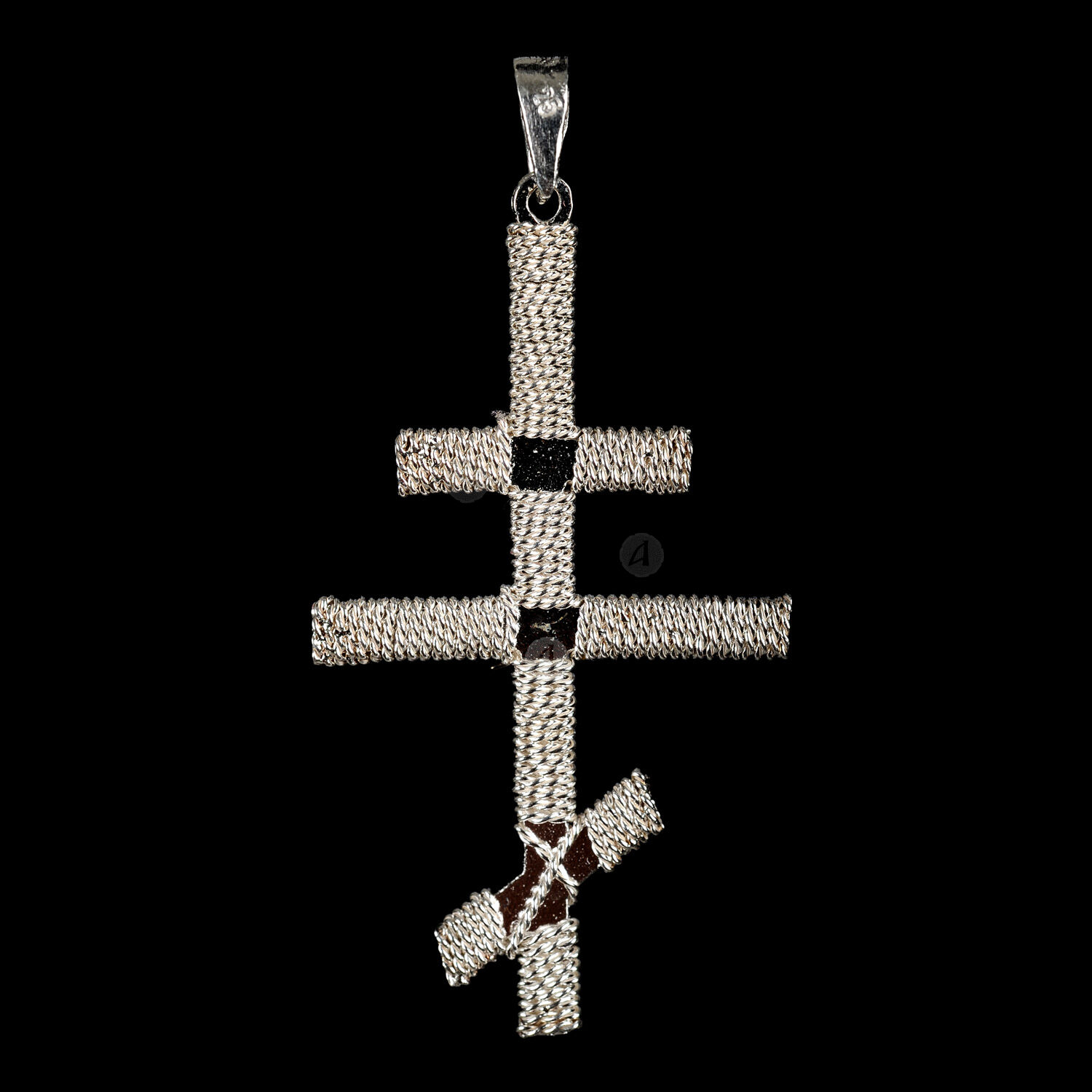 Επιστήθιος συρματερός πλεκτος σταυρός Αγίου Όρους από ασήμι 925°.