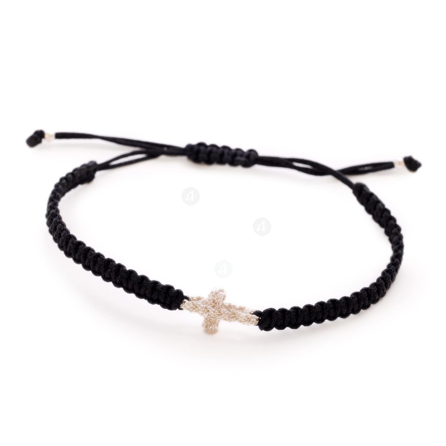 Πλεκτό βραχιόλι με χειροποίητο ασημένιο σταυρό 925°.