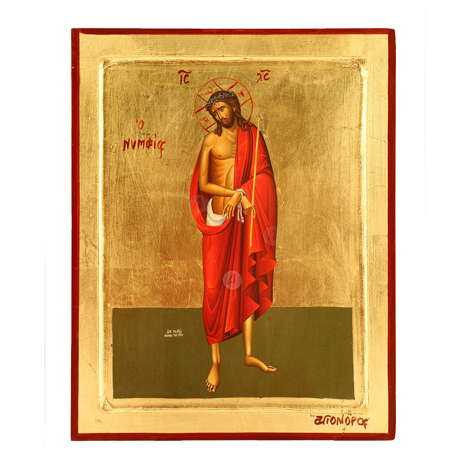 Lithography (icon) of Jesus Christ Nimfios with real gold leaf in MDF.