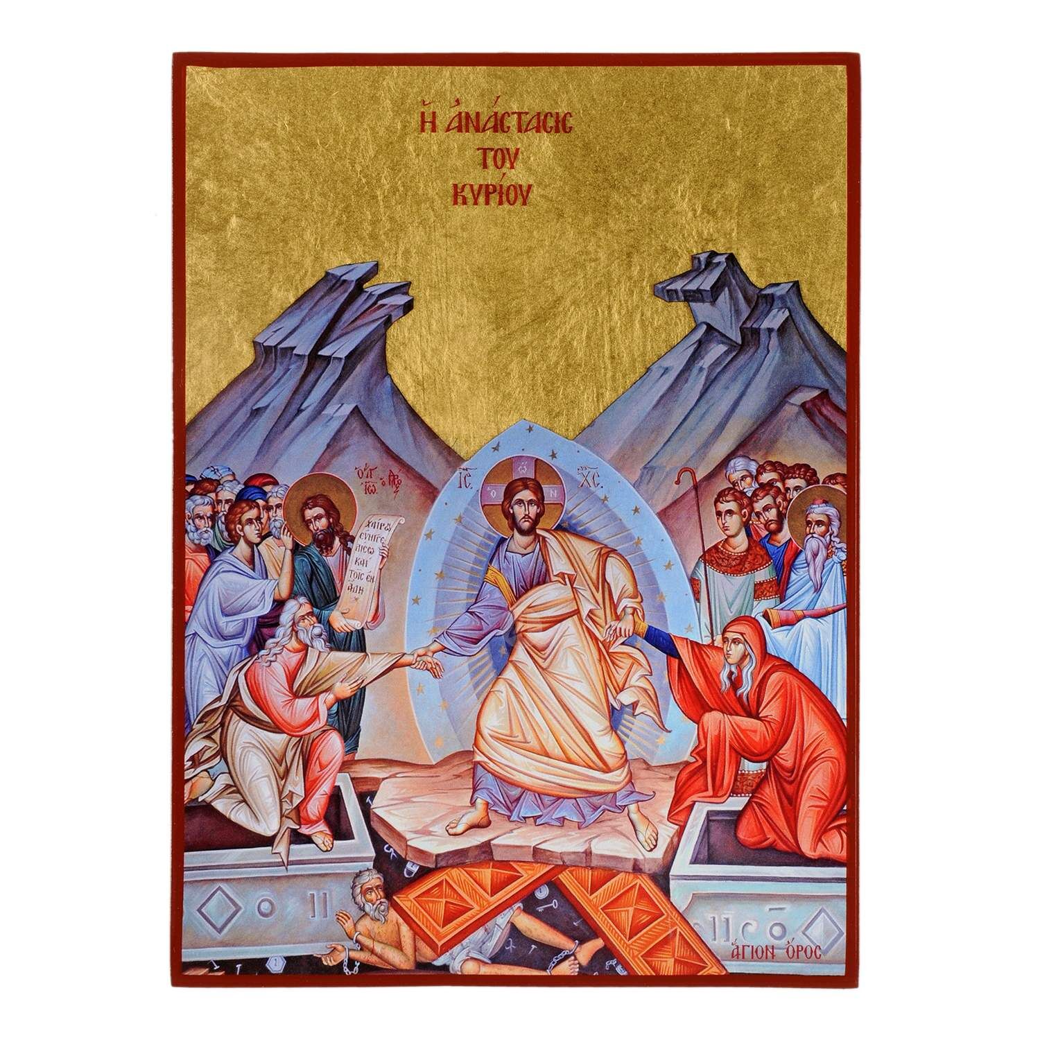 Mount Athos serigraph (icon) of the Resurrection of Jesus Christ on wood with real gold leaves.