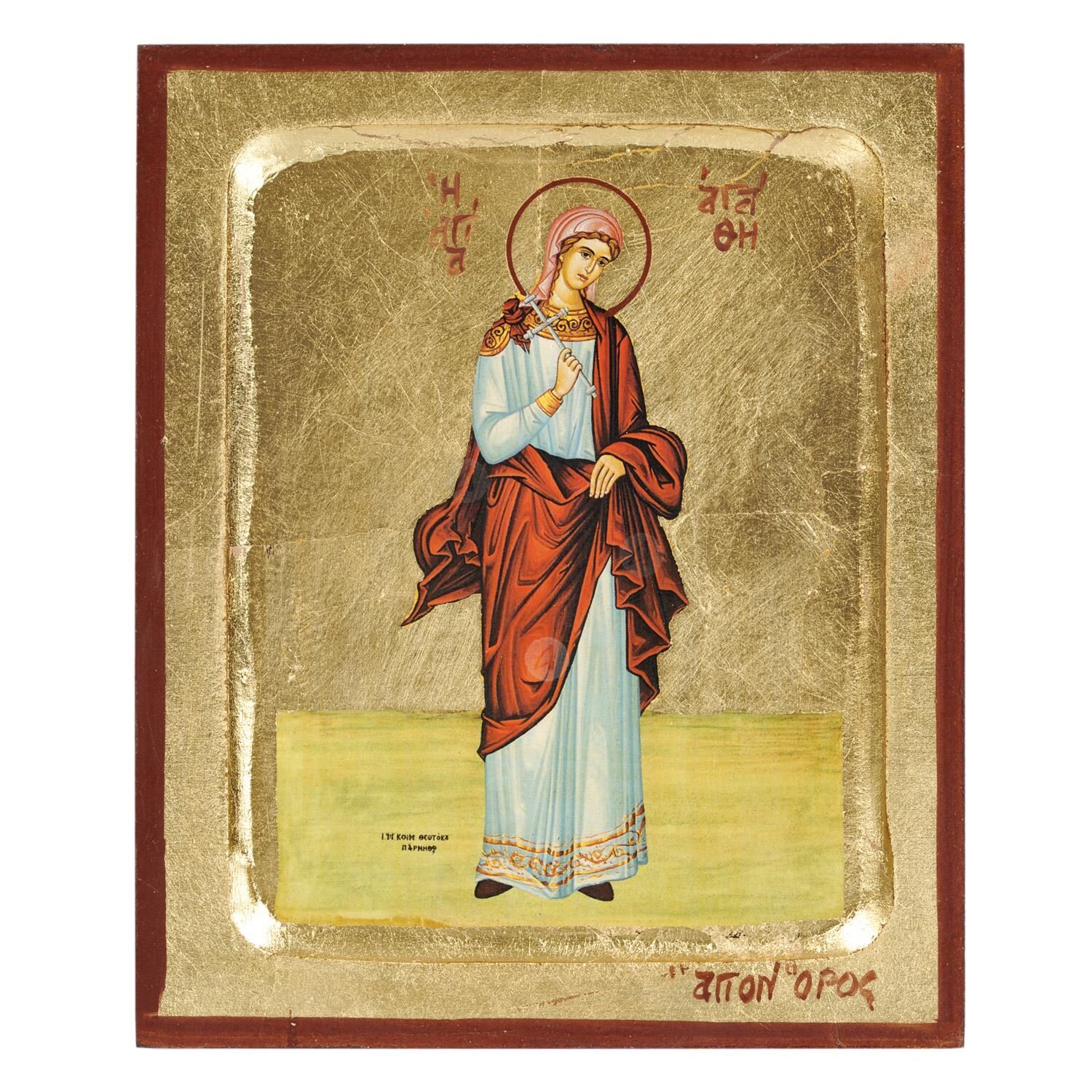 Lithography (icon) of Saint Agatha the Virgin Martyr with real gold leaf in MDF.