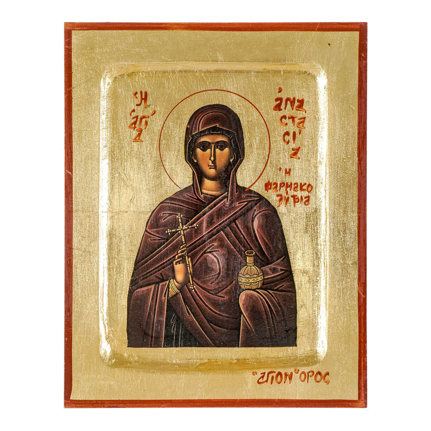 Lithography (icon) of Saint Anastasia the “Deliverer from Potions” with real gold leaf in MDF.