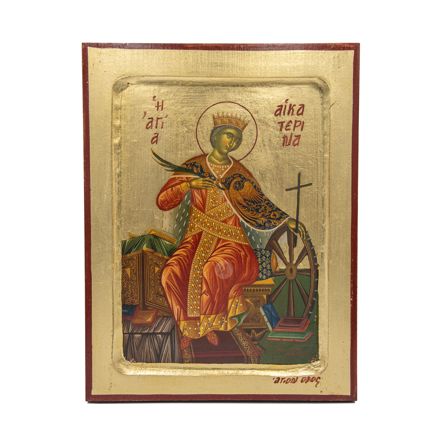 Lithography (icon) of Saint Katherine the Great Martyr of Alexandria with real gold leaf in MDF.