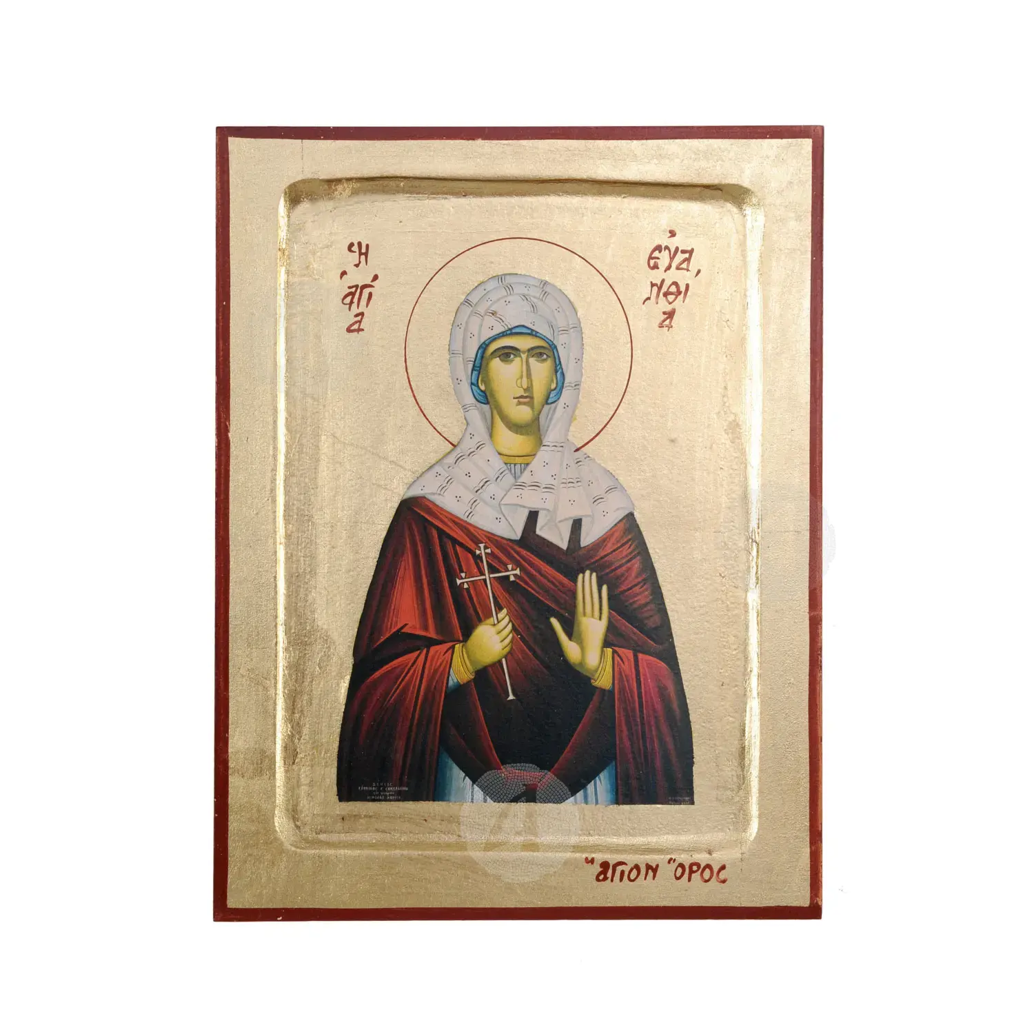 Lithography (icon) of Saint Evanthea with real gold leaf in MDF.