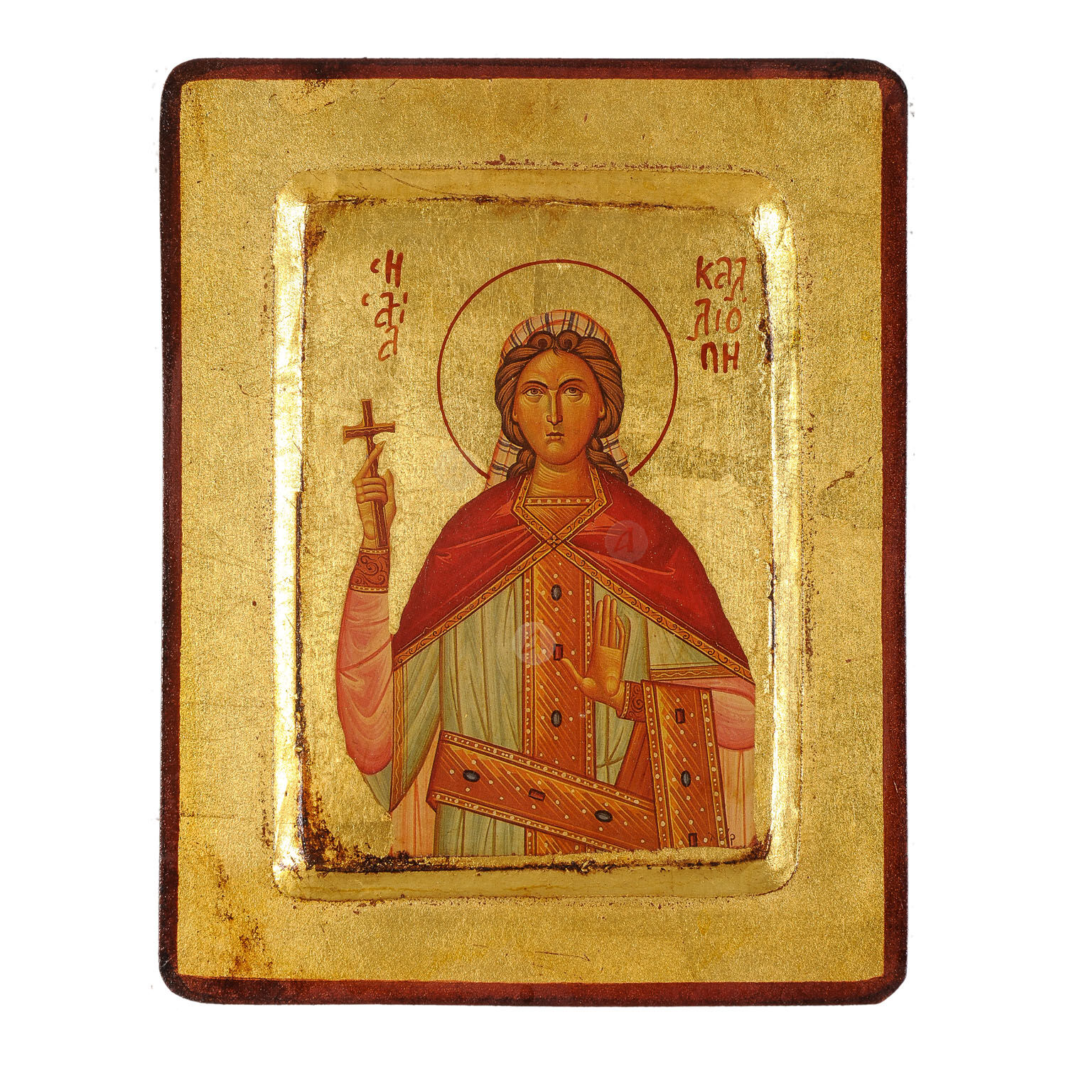 Lithography (icon) of Saint Kalliope the Martyr with real gold leaf in MDF.