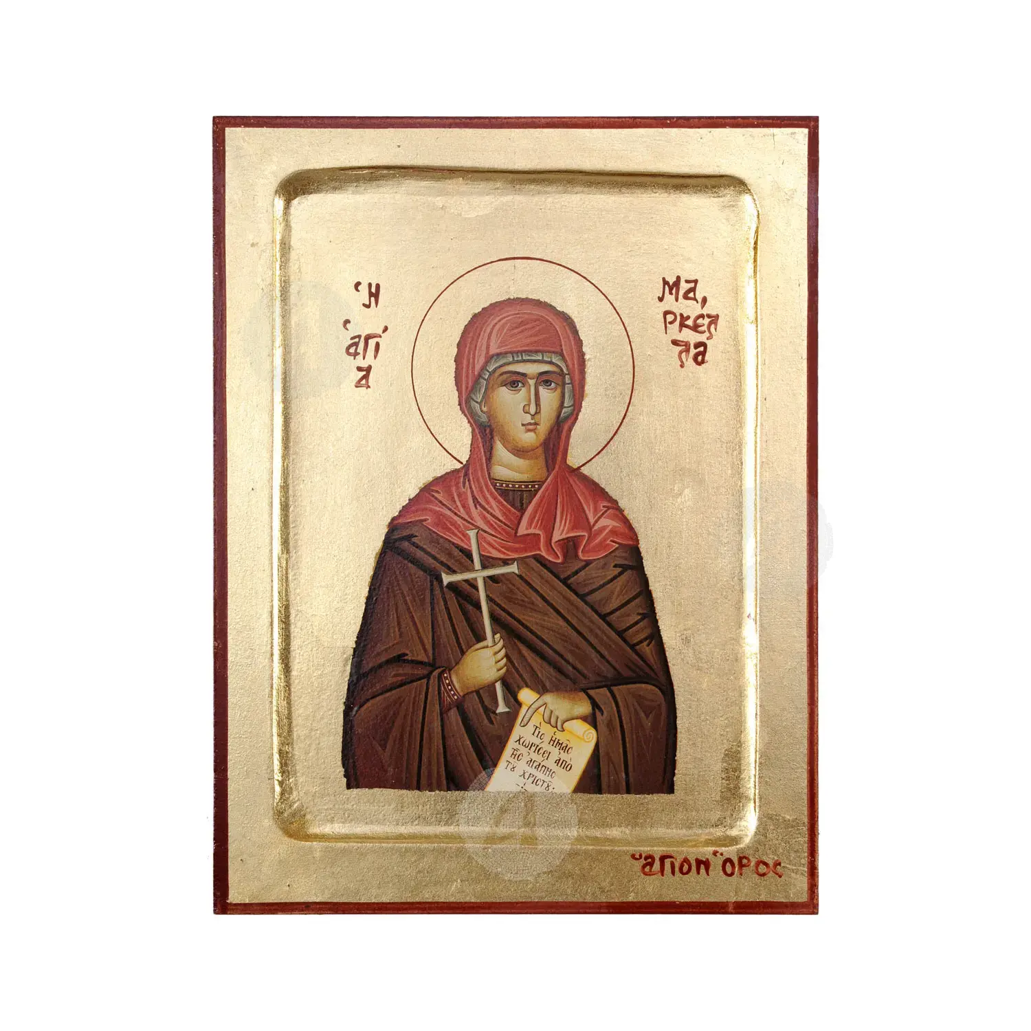 Lithography (icon) of Saint Markella the Virgin Martyr of Chios with real gold leaf in MDF.