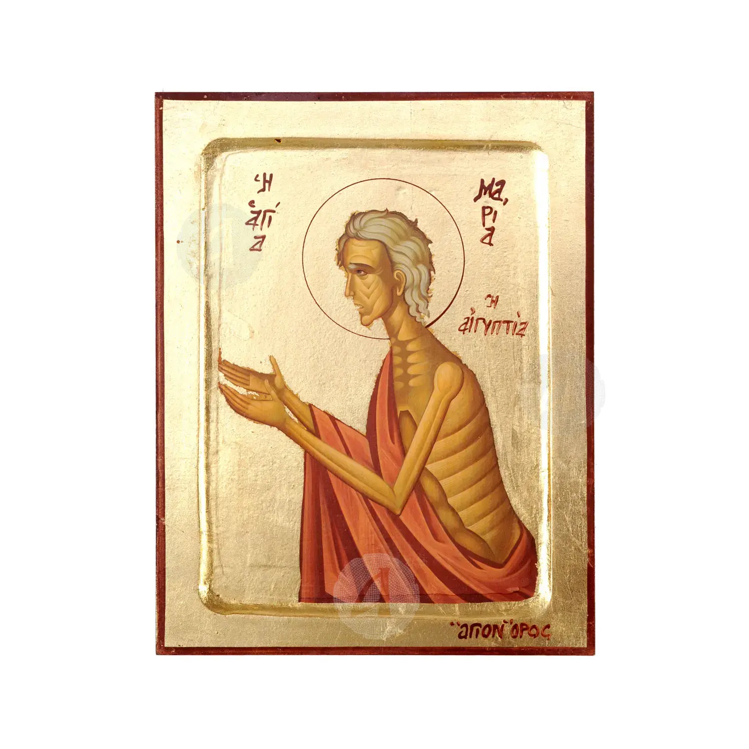 Lithography (icon) of Saint Mary of Egypt with real gold leaf in MDF.