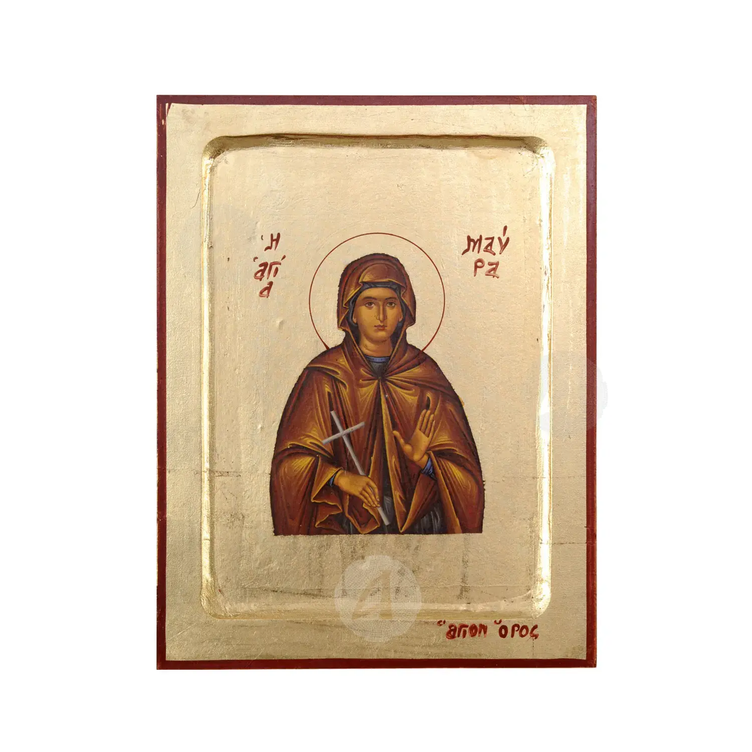 Lithography (icon) of Saint Mavra with real gold leaf in MDF.