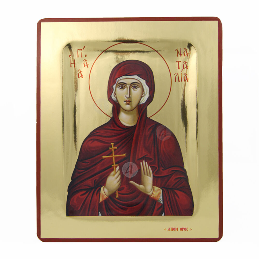 Gold foil printed icon of Saint Natalia the Martyr on Hagiography wood.