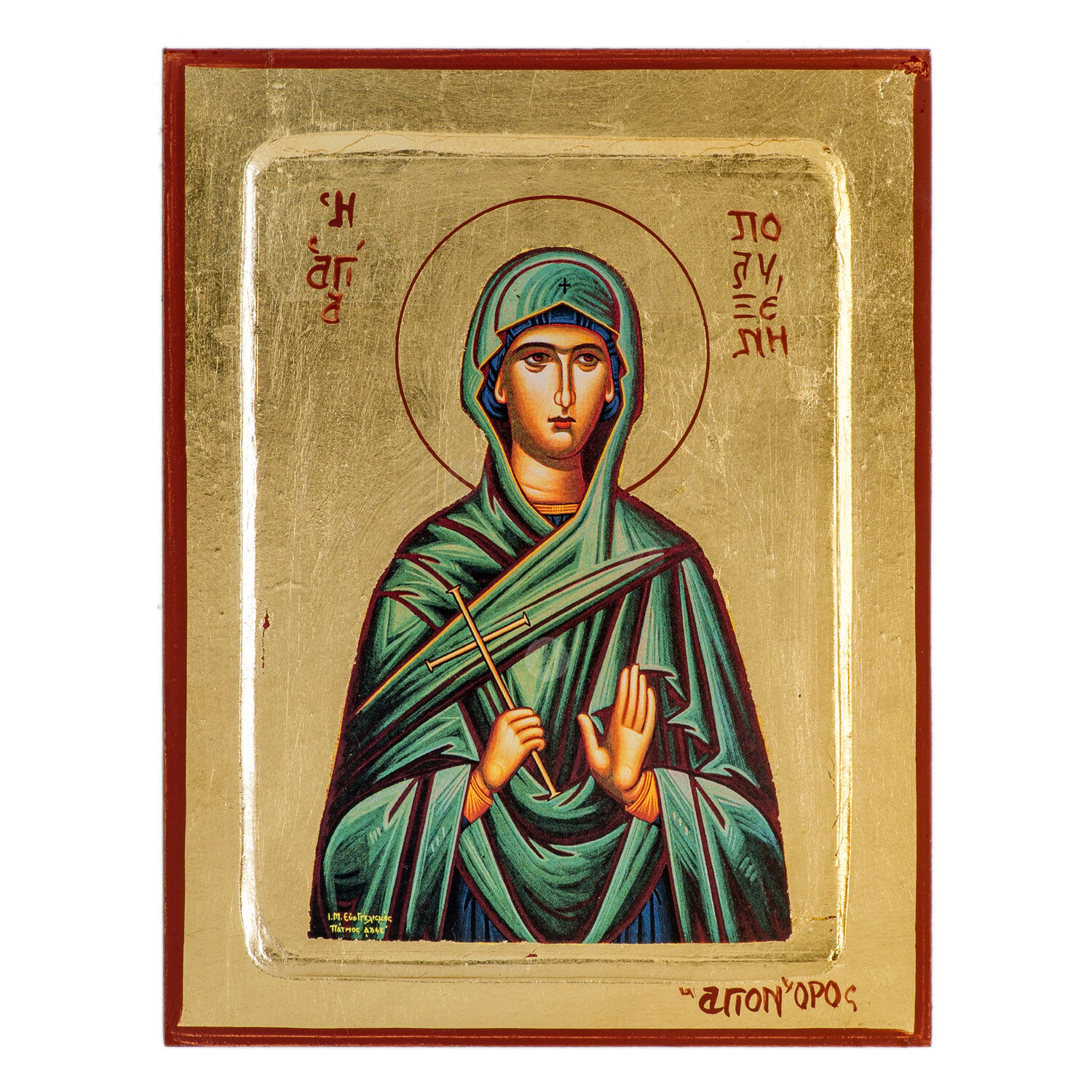 Lithography (icon) of Saint Polyxeni the Righteous with real gold leaf in MDF.