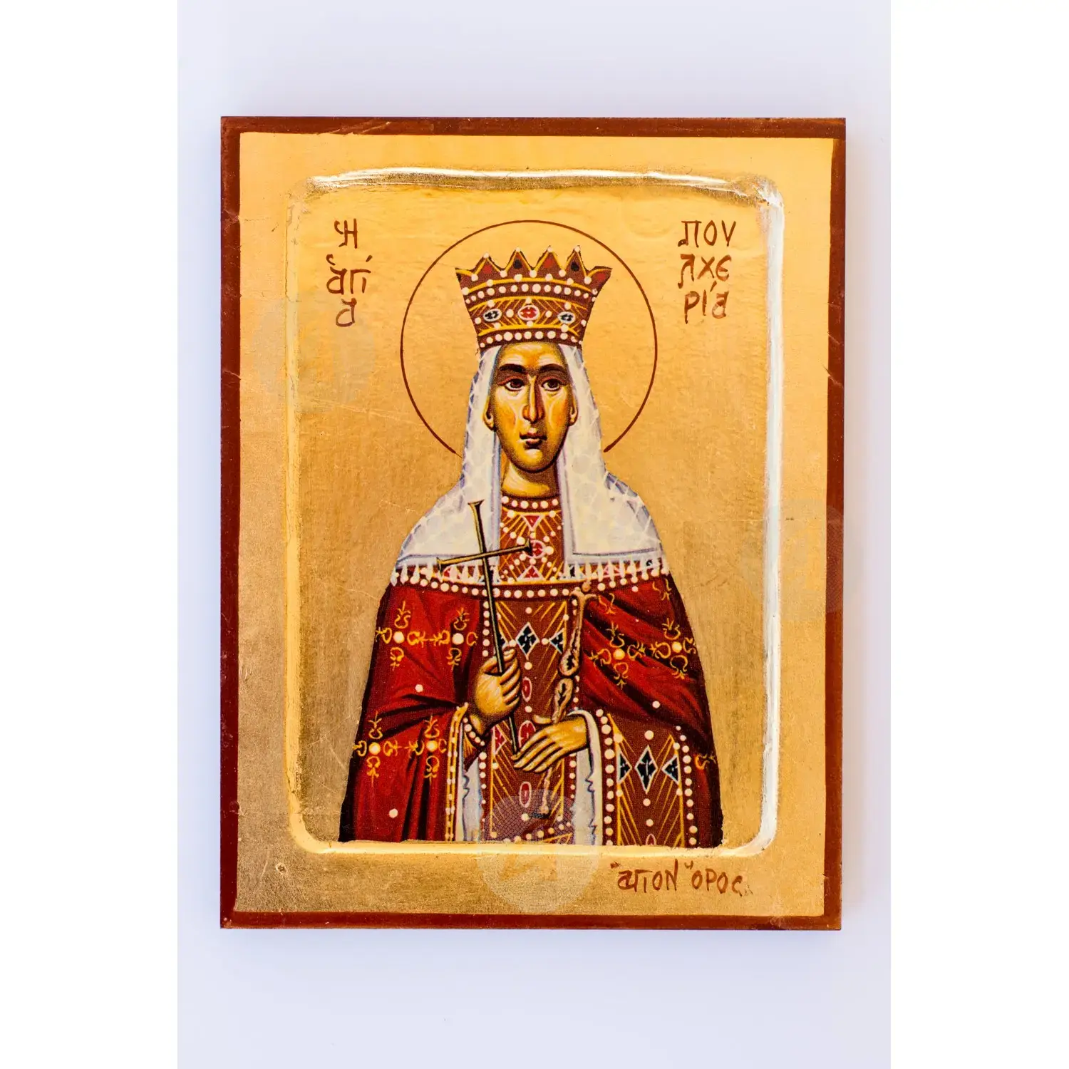 Lithography (icon) of Saint Pulcheria the Empress with real gold leaf in MDF.