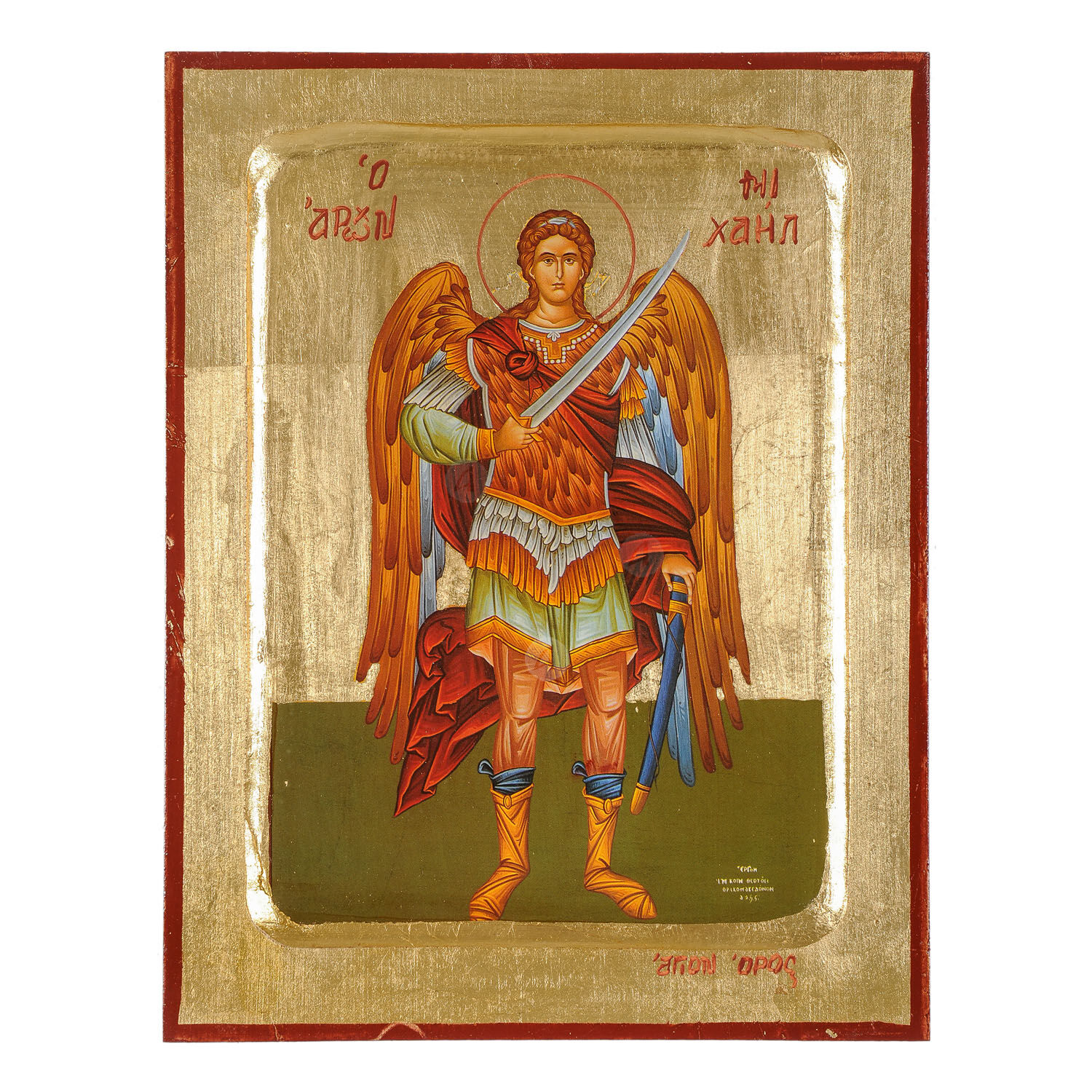 Lithography (icon) of Archangel Michael the Taxiarch with real gold leaf in MDF.