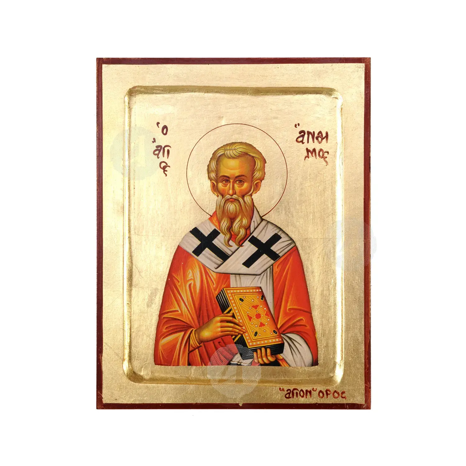 Lithography (icon) of Saint Anthimus with real gold leaf in MDF.