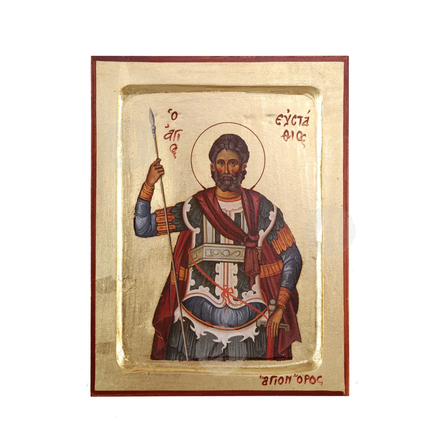 Lithography (icon) of Saint Eustathius with real gold leaf in MDF.