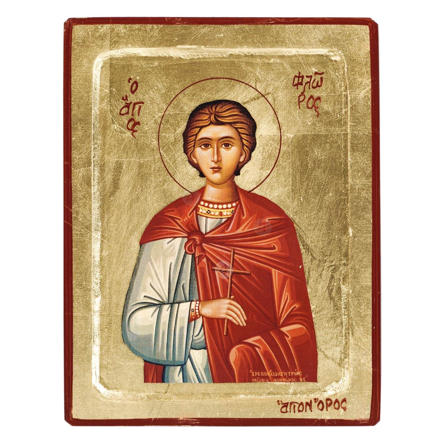 Lithography (icon) of Saint Floros the Martyr with real gold leaf in MDF.