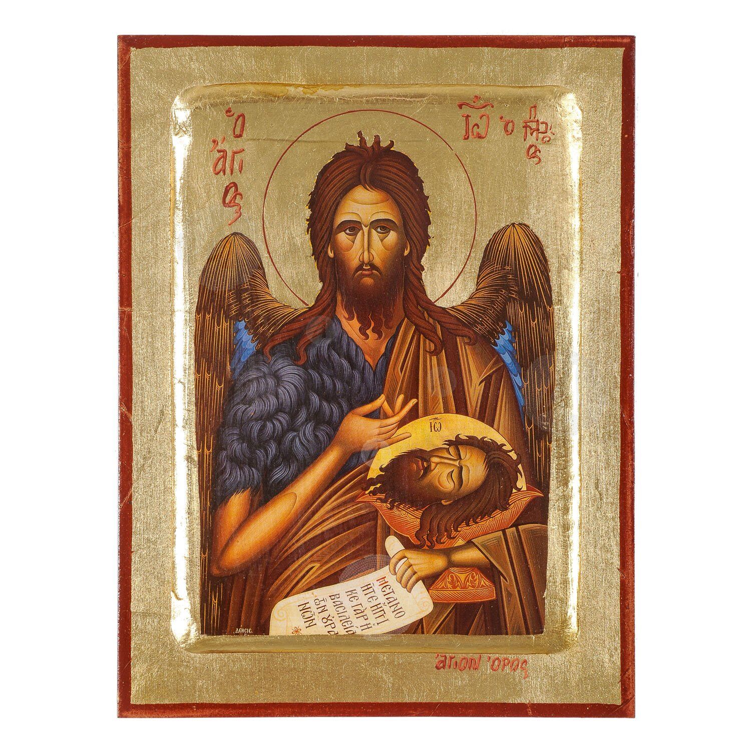 Lithography (icon) of Saint John the Baptist with real gold leaf in MDF.