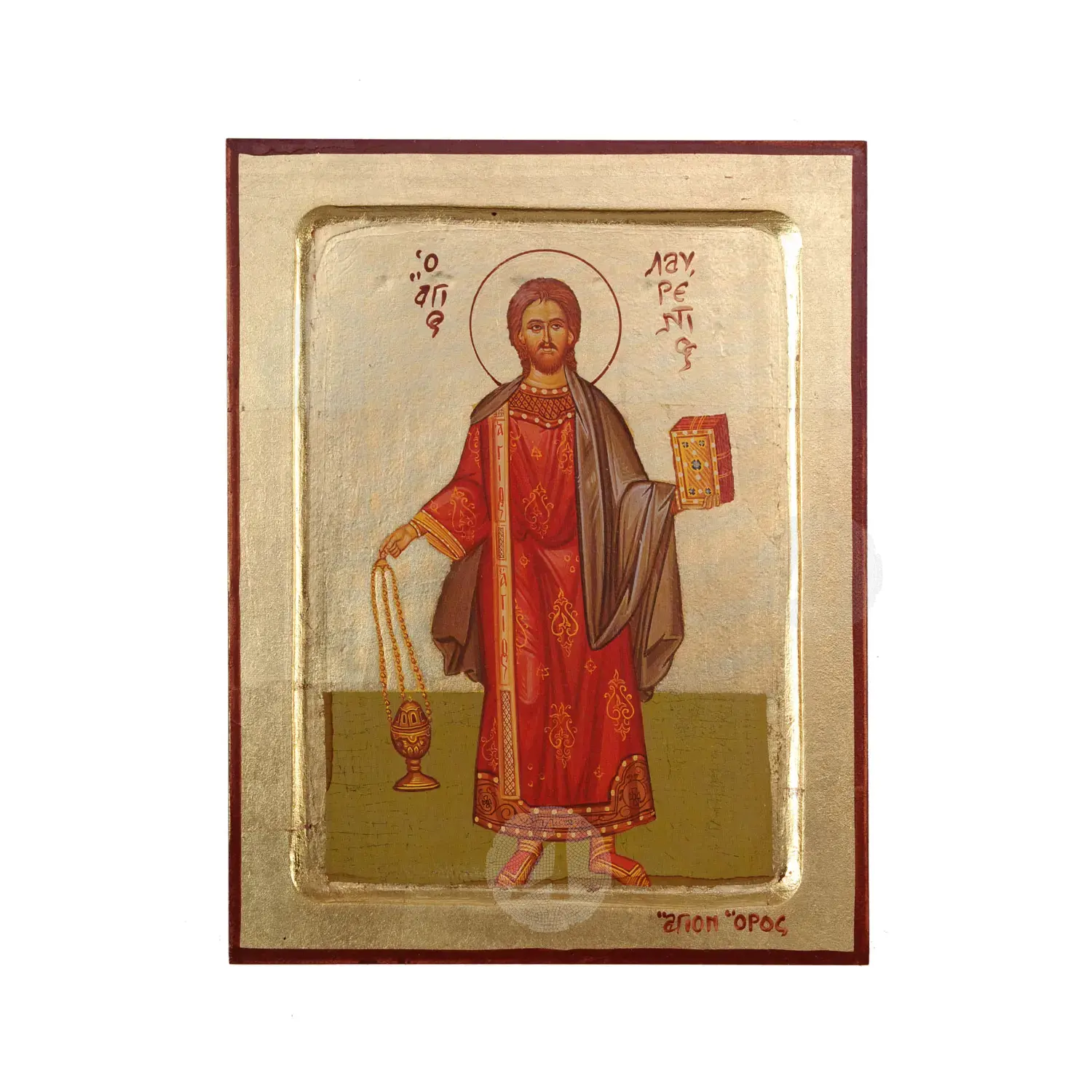 Lithography (icon) of Saint Laurence with real gold leaf in MDF.