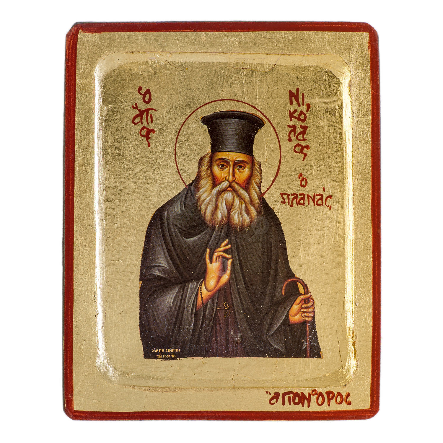 Lithography (icon) of Saint Nicholas Planas with real gold leaf in MDF.