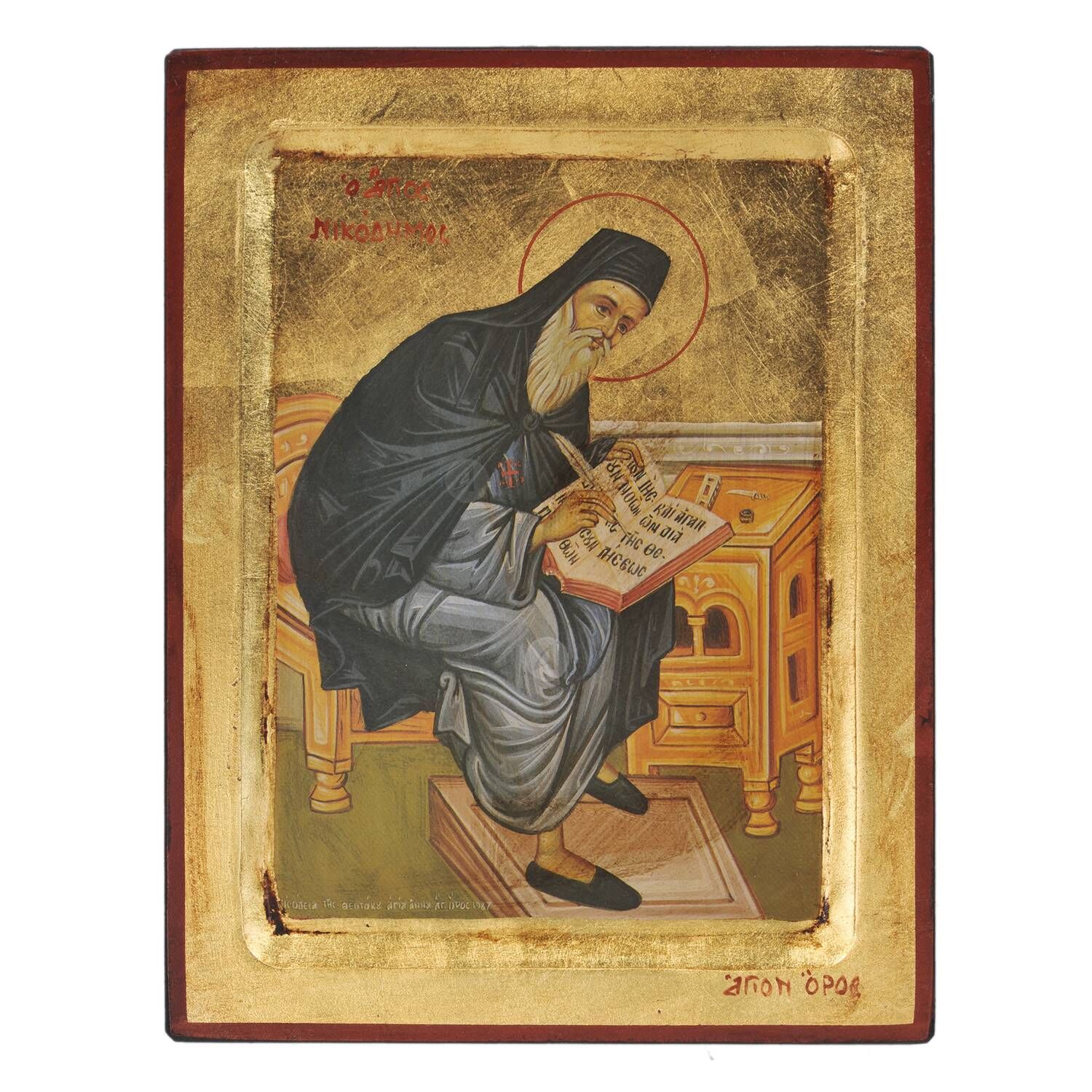 Lithography (icon) of Saint Nicodemus the Hagiorite with real gold leaf in MDF.