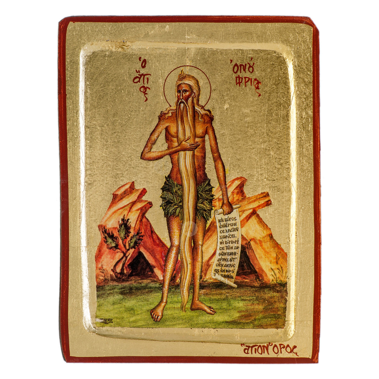 Lithography (icon) of Saint Onouphrios the Great with real gold leaf in MDF.