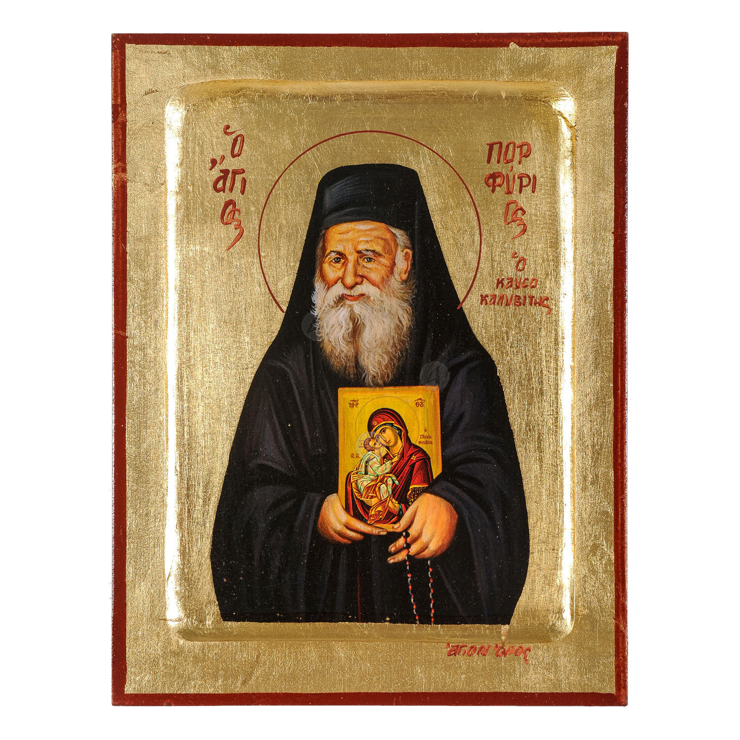 Lithography (icon) of Saint Porphyrios the Kafsokalyvite with real gold leaf in MDF.