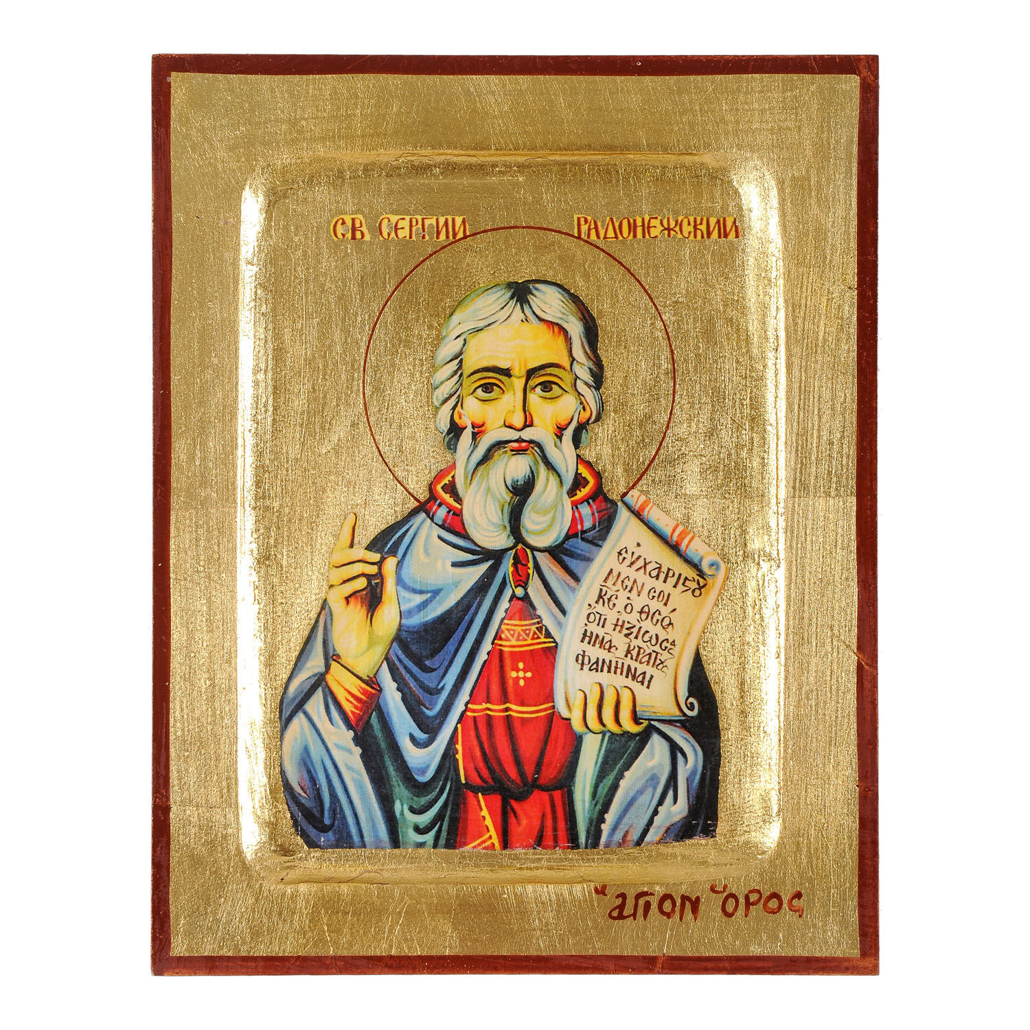 Lithography (icon) of Saint Sergius of Radonezh with real gold leaf in MDF.