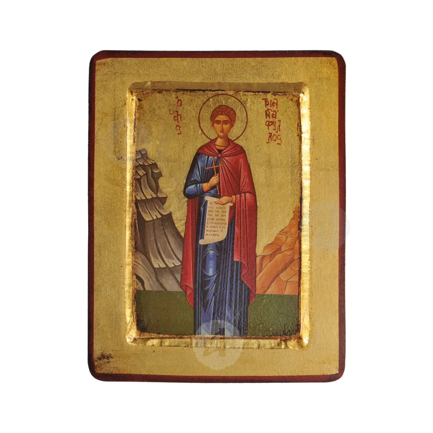 Lithography (icon) of Saint Triantaphyllos of Zagoras with real gold leaf in MDF.