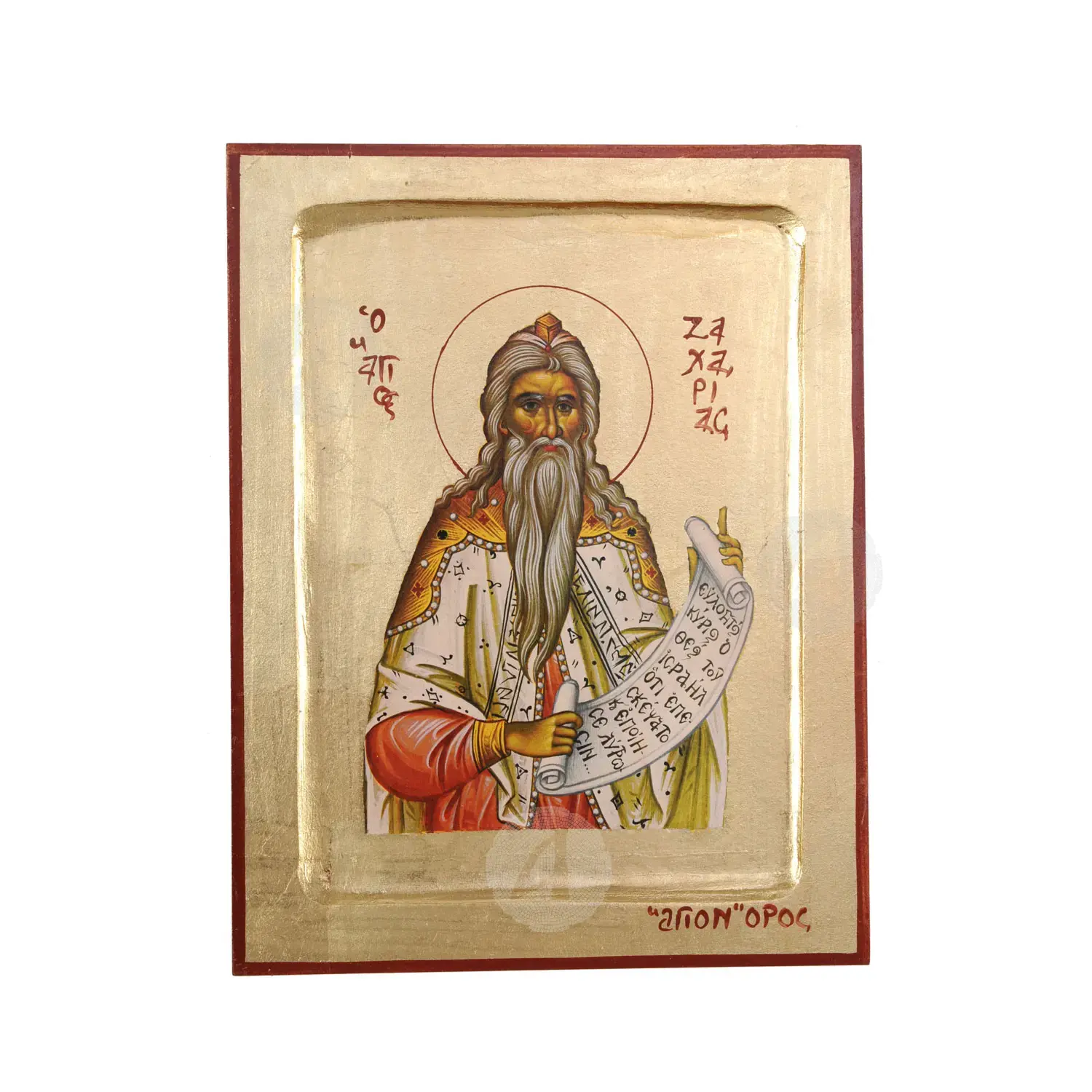 Lithography (icon) of Saint Zacharias the Prophet with real gold leaf in MDF.