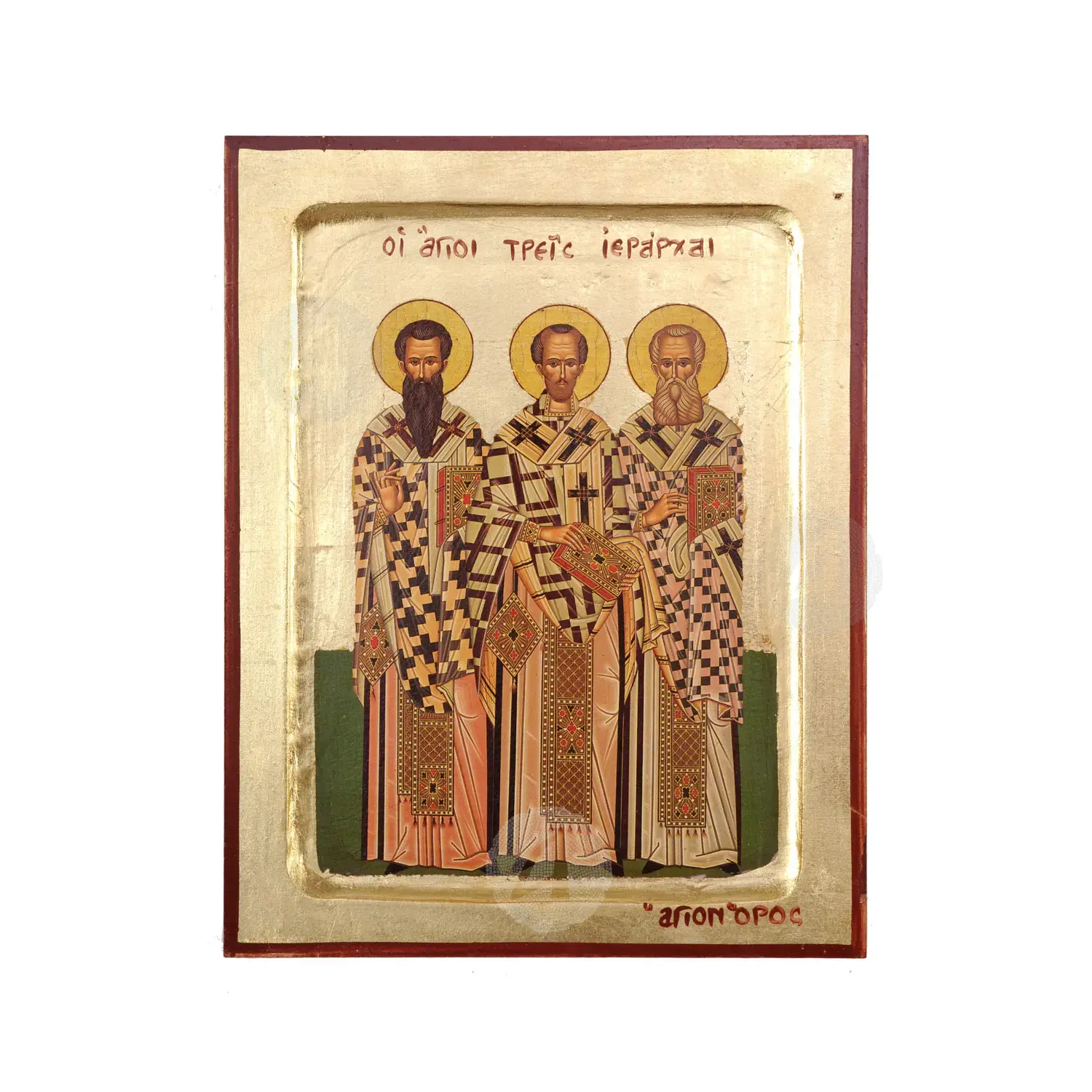 Lithography (icon) of the Three Hierarchs with real gold leaf in MDF.