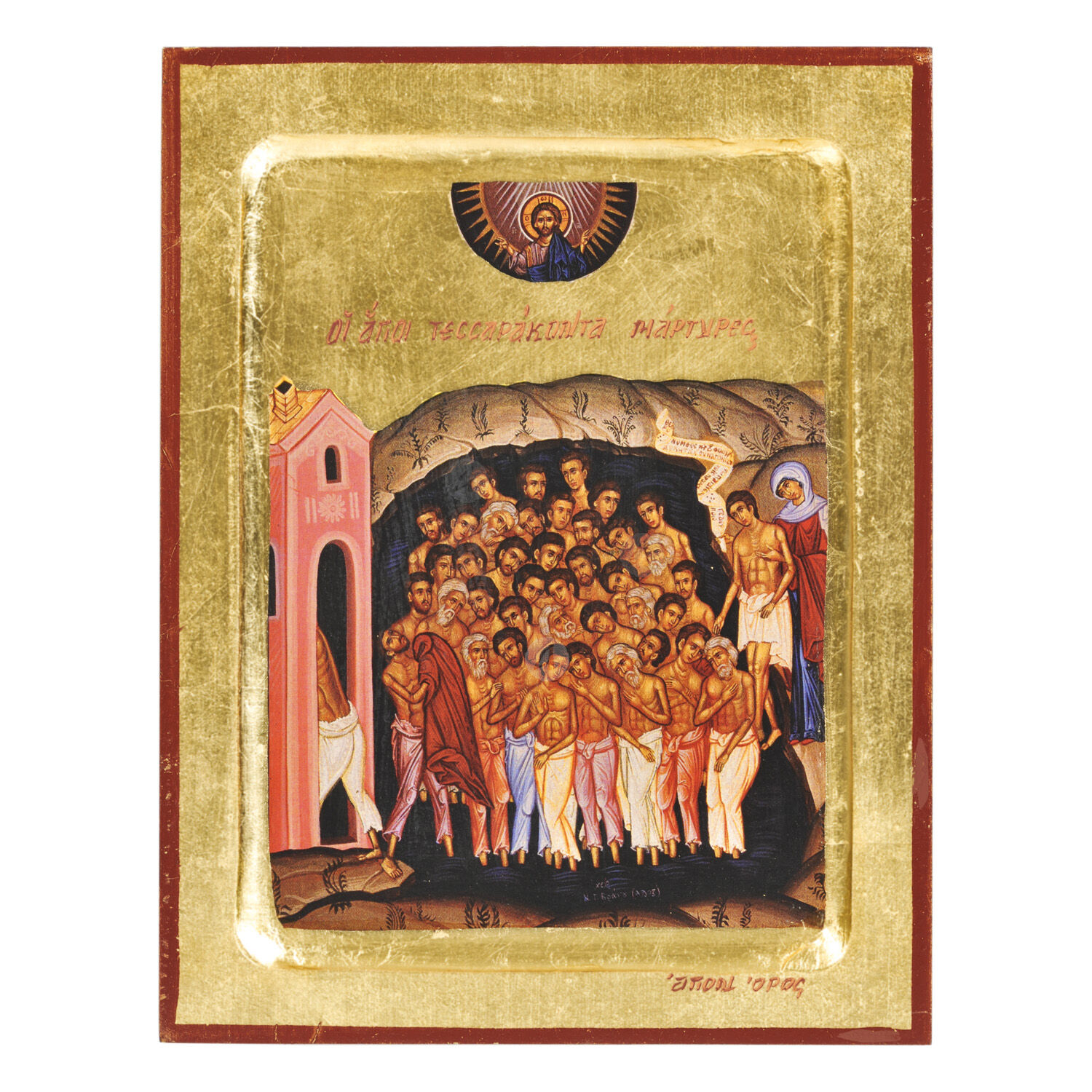 Lithography (icon) of the Holy Forty Martyrs of Sebaste with real gold leaf in MDF.