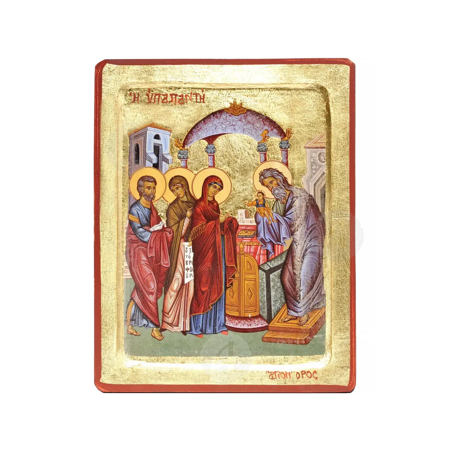 According to the Evangelist Luke, forty days after the birth of Jesus Christ, the Blessed Virgin Mary went with her husband Joseph to the Temple in Jerusalem to dedicate the divine infant to God and offer as a sacrifice two turtledoves. On that day, Saint Symeon the God-Receiver was in the Temple and took the divine infant in his arms during the Presentation of Christ.