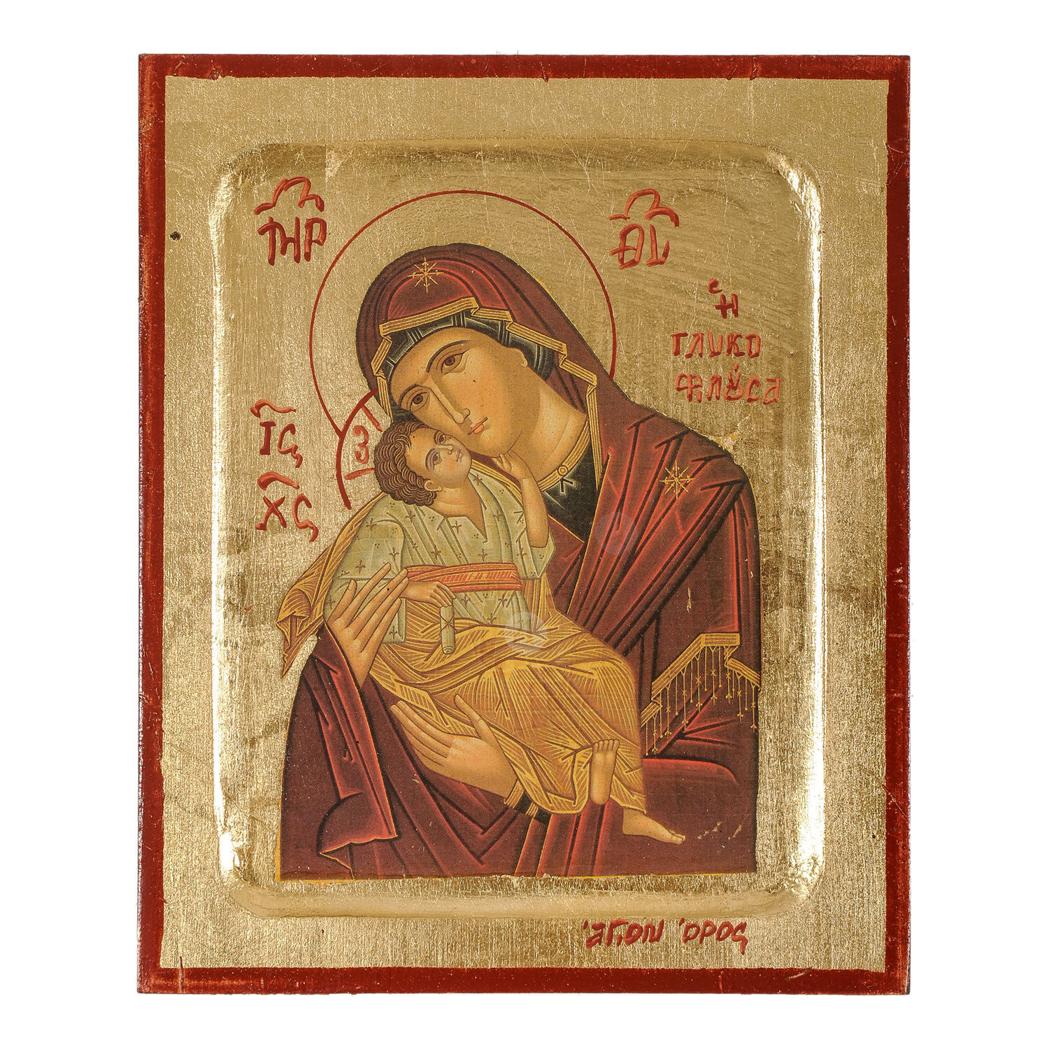 Lithography (icon) of Virgin Mary (Panagia) Glikofilousa with real gold leaf in MDF.