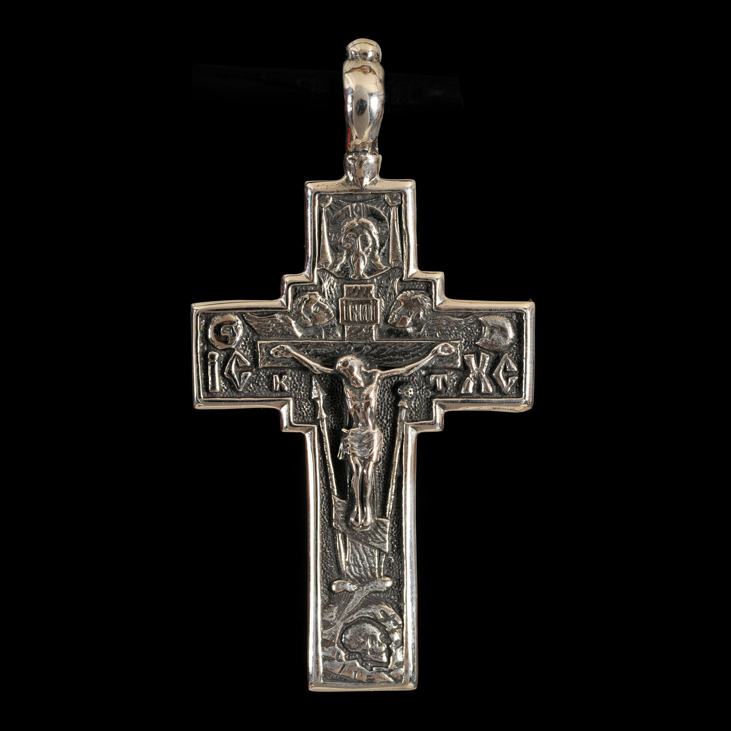 Orthodox byzantine cross necklace made of silver 925° with Crucified Jesus Christ.
