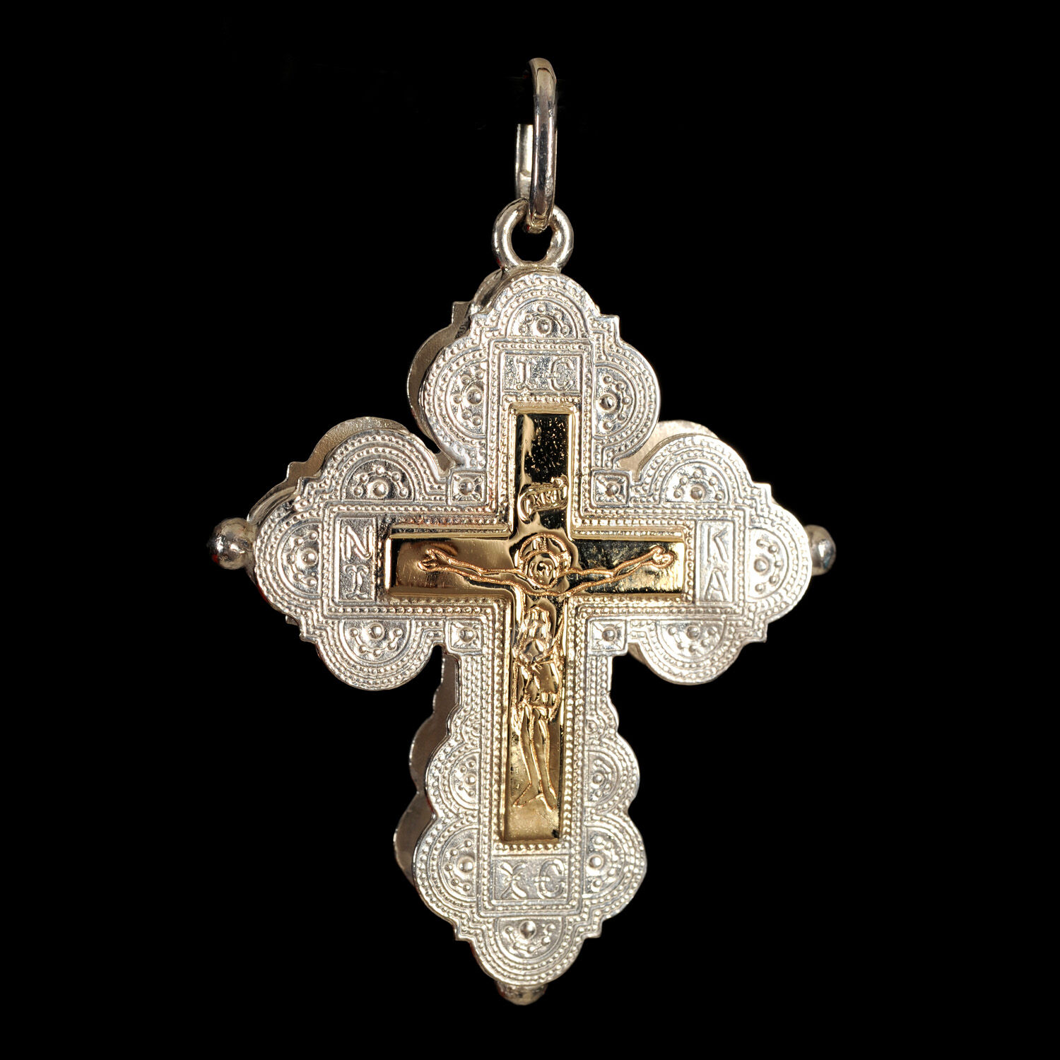 Silver screw cross necklace that opens, with a solid gold cross 14 Κ at the center. Suitable for keeping Holy Remains.