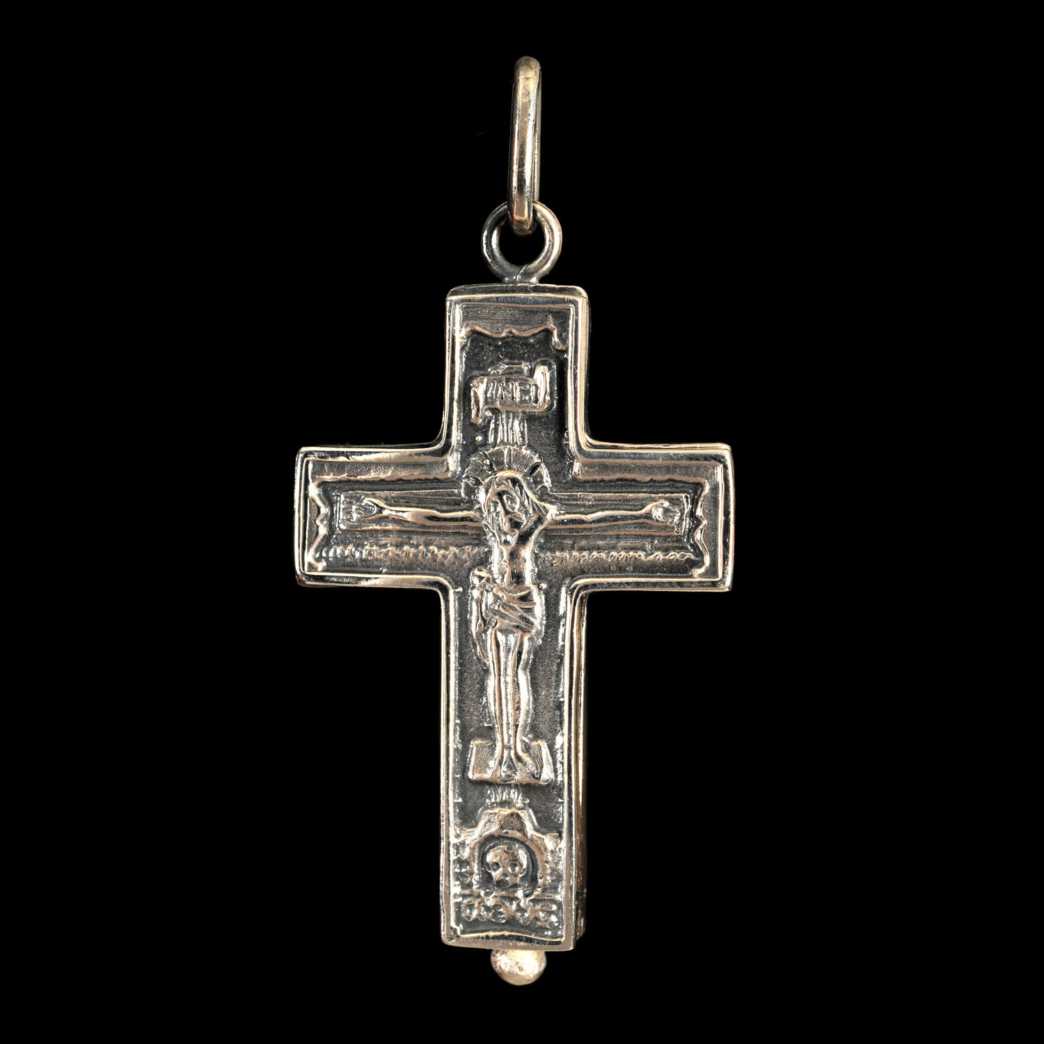 Silver screw cross necklace that opens, with a solid gold cross 14 Κ at the center. Suitable for keeping Holy Remains.