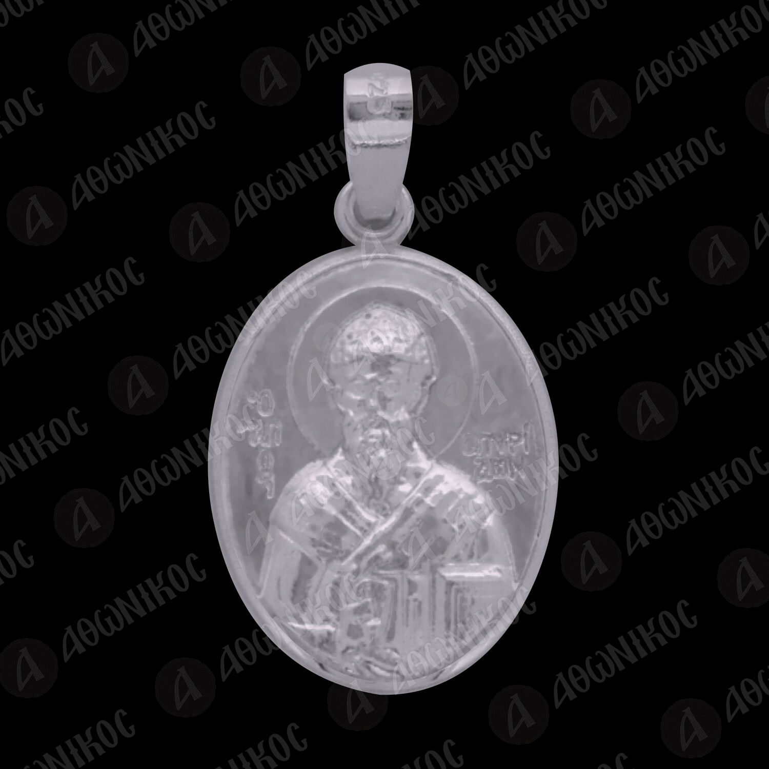 Oval pendant made of 925° sterling silver with the form of St Spiridon on the front side.