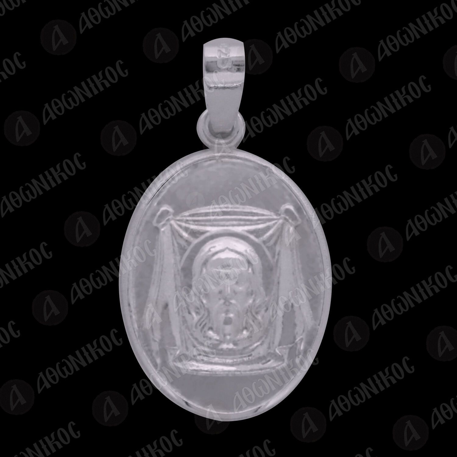 Oval pendant made of 925° sterling silver with the form of Holy Napkin on the front side.