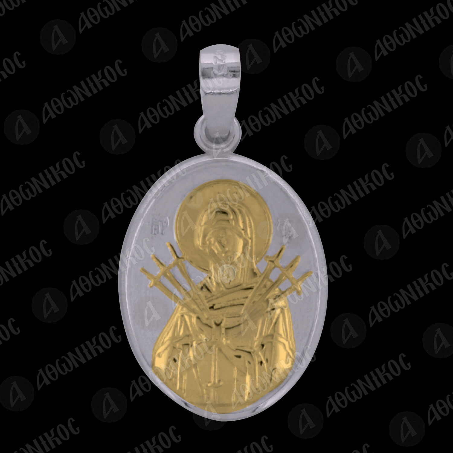 Silver Oval Pendant Virgin Mary Seven Swords (F14B)