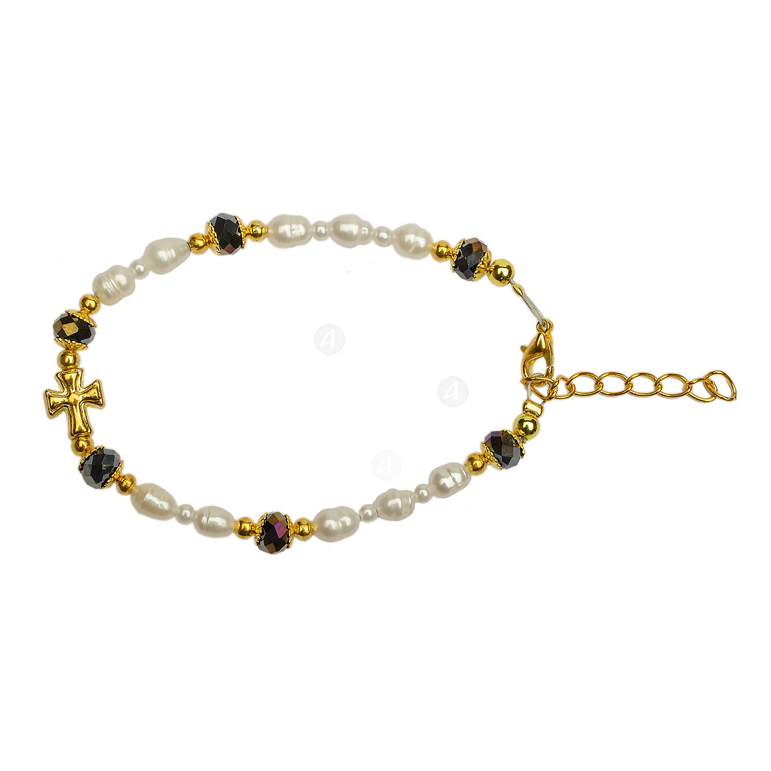 Bracelet with Clasp and Gold Plated Cross (WGR)