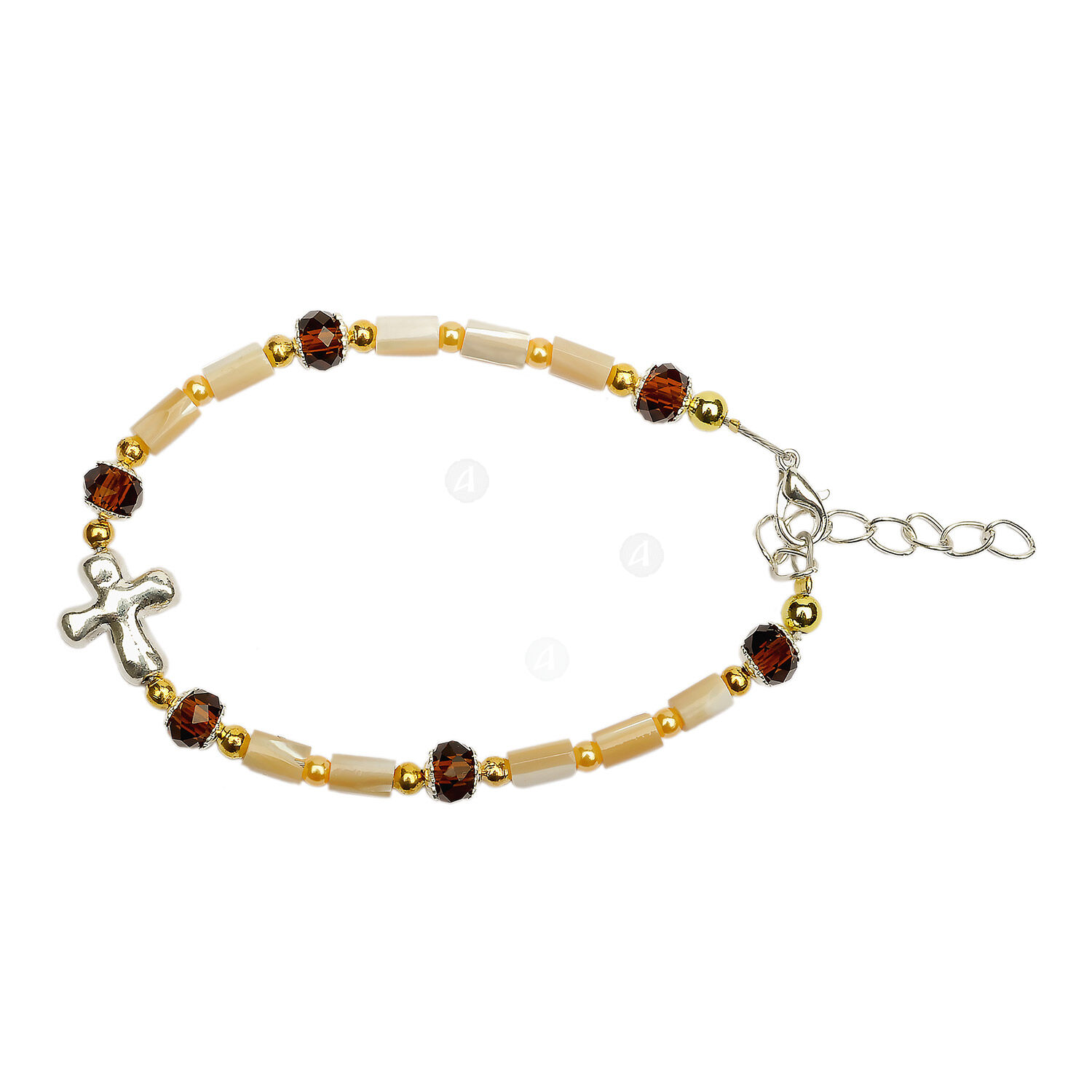 Orthodox bracelet with clasp, silver cross and brown semi-precious stones.