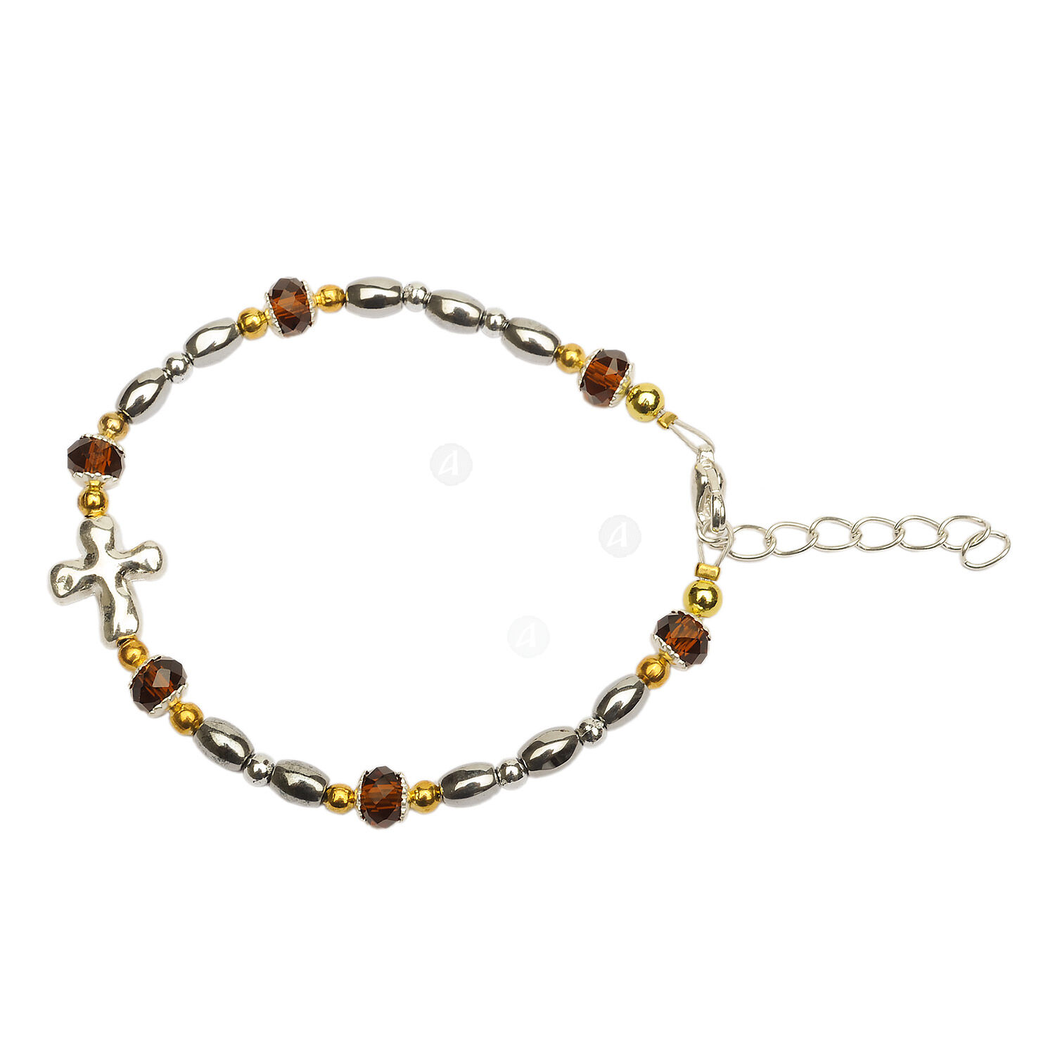 Orthodox bracelet with clasp, silver cross and brown semi-precious stones.