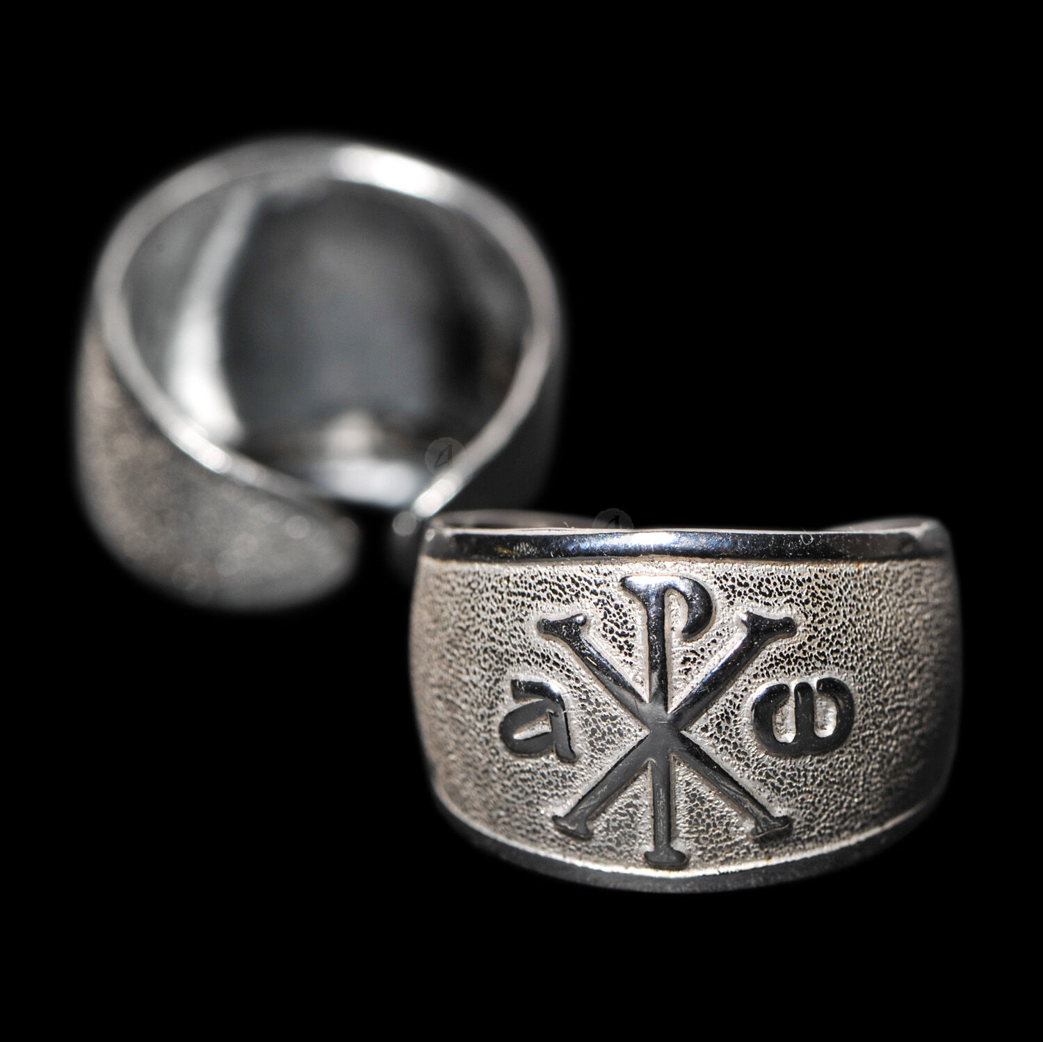 Mount Athos ring made of silver 925° with engraved Christogram. Open with size range 52-59.