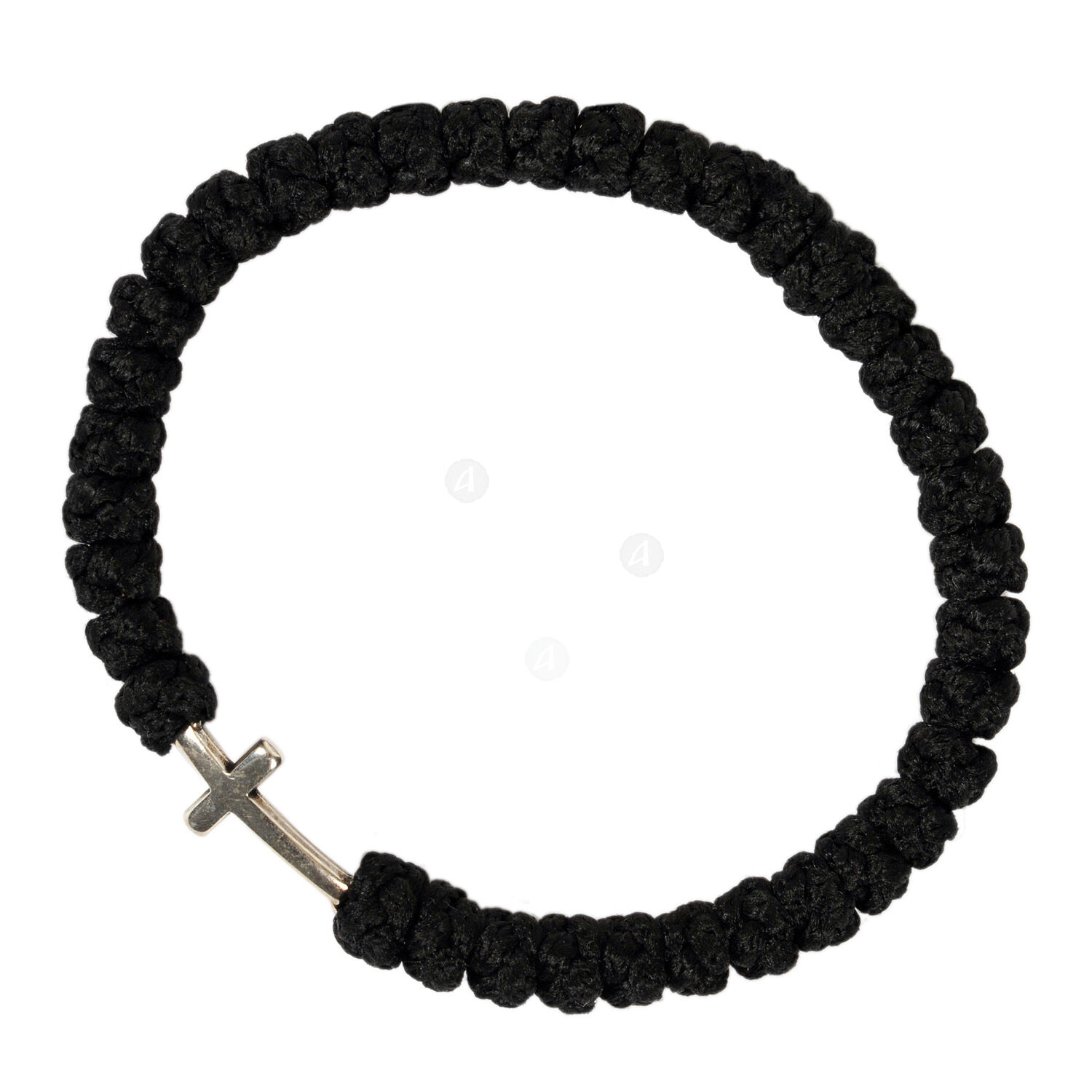 Orthodox silk prayer rope (komboskini) in black color with 40 knots and metal cross.